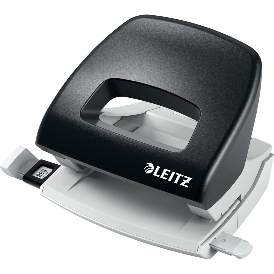 The Leitz 5038 is a compact, black 2-hole punch designed for everyday office tasks, offering precise hole spacing for organizing documents. Ideal for personal or professional use, it efficiently handles paper punching needs up to mid-size document batches.