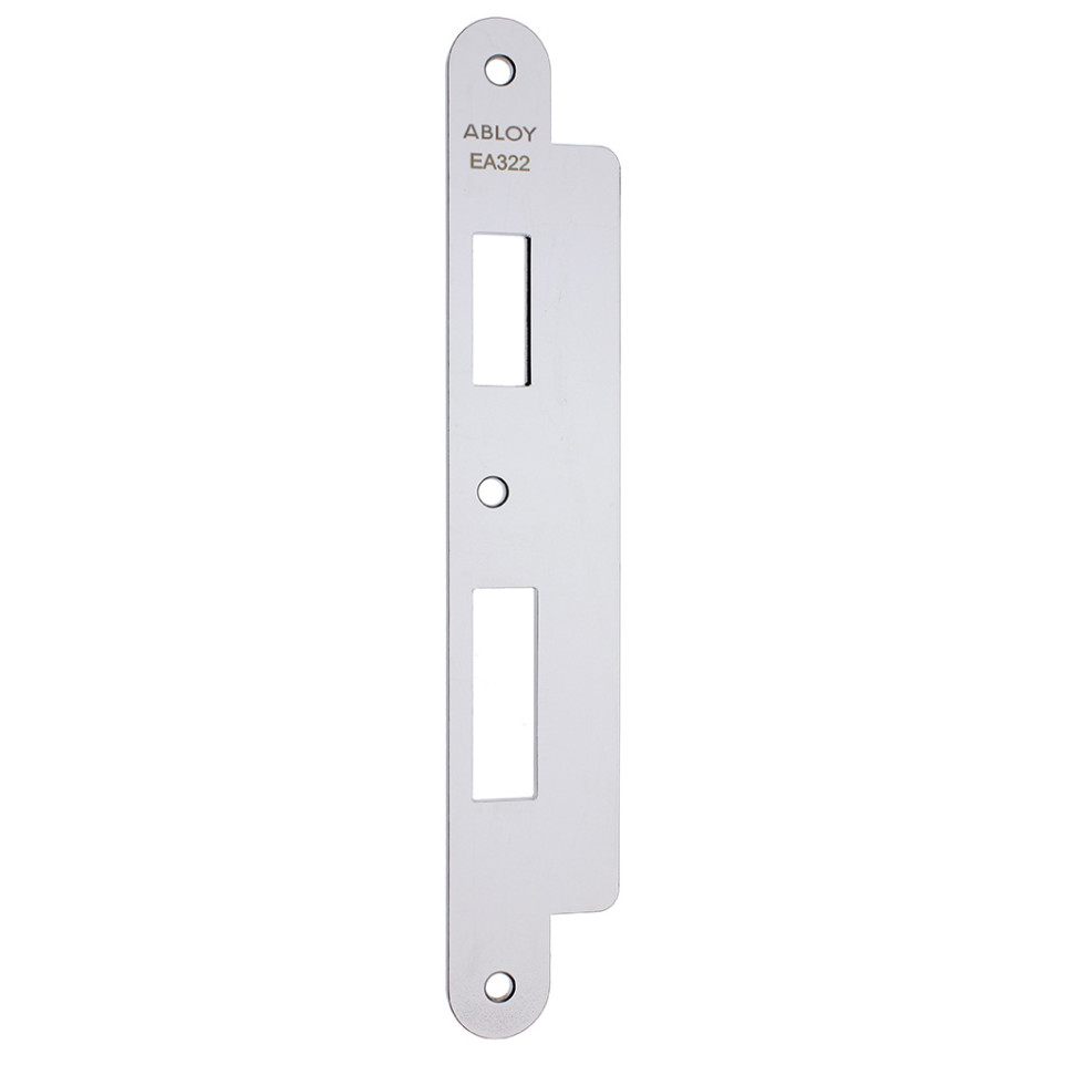 Stainless steel strike plate designed for Abloy solenoid locks, ensuring secure and reliable engagement for enhanced door locking in security applications.