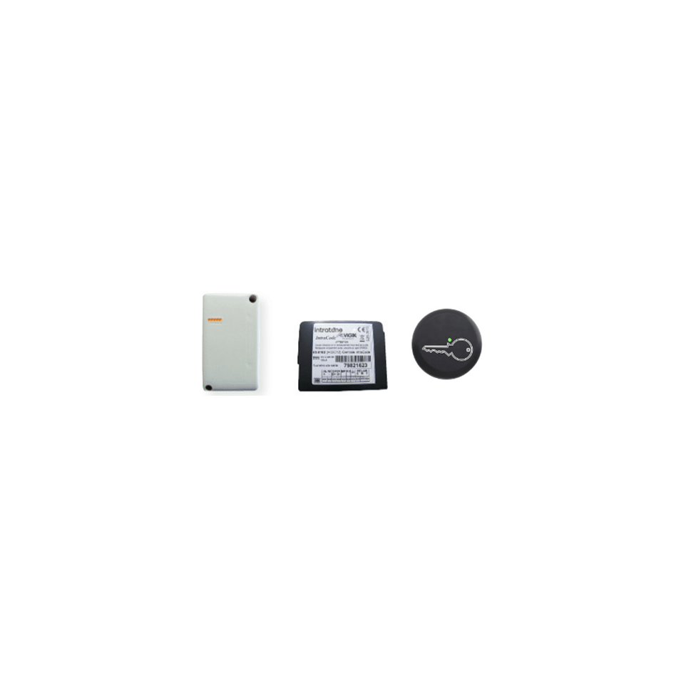 The Intrabox Data Eco Prox single-door access control kit offers secure, remote management of door entry using a round proximity reader and badge system, making it ideal for commercial or residential buildings seeking efficient access control without on-site programming.