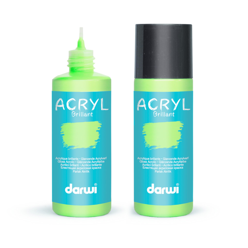 Darwi Flacon de 80 ml de Peinture Acrylique Universelle Brillante La peinture acrylique universelle DARWI offre de nombreuses possibilités créatives pour les artistes amateurs, professionnels et passionnés de loisirs créatifs. Idéal sur tous les supports, elle s'adapte à toutes les envies créatives ! Lisse et lustrée, cette finition BRILLANTE accentue les couleurs, les rendant plus vives et vibrantes. La gamme comprends 13 teintes miscibles, extrêmement brillantes et de viscosité moyenne. Nous recommandons un séchage lent pour un parfait rendu de surface. Avant utilisation, bien secouer le flacon. Il est également recommandé de dégraisser et nettoyer la surface à peindre. La peinture peut s'appliquer à l'aide d'un pinceau ou d'une éponge mais aussi directement au tube grâce à son embout-applicateur ajoutant ainsi du relief aux créations. La peinture se dilue et se nettoie à l'eau. Conserver le produit à une température comprise entre 5 et 25 degrés.