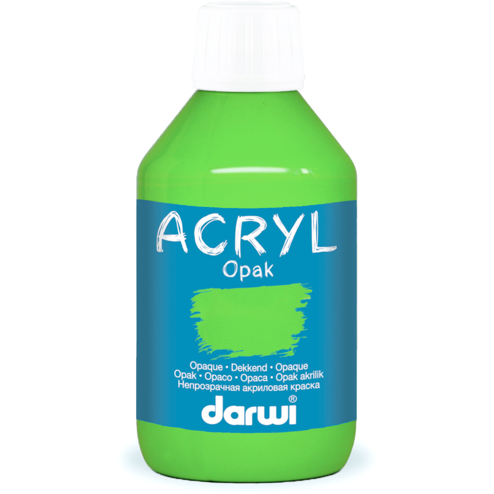 Darwi Flacon de 250 ml de Peinture Acrylique Universelle Opaque La peinture acrylique universelle DARWI offre de nombreuses possibilités créatives pour les artistes amateurs, professionnels et passionnés de loisirs créatifs. Idéal sur tous les supports, elle s'adapte à toutes les envies créatives ! Dense en pigments, la finition OPAQUE couvre complètement la surface sans laisser transparaître la couleur de base. 38 teintes miscibles, mates, extrêmement couvrantes, viscosité élevé. Avant utilisation, bien secouer le flacon. Il est également recommandé de dégraisser et nettoyer la surface à peindre. La peinture peut s'appliquer à l'aide d'un pinceau ou d'une éponge mais aussi directement au tube grâce à son embout-applicateur ajoutant ainsi du relief aux créations. La peinture se dilue et se nettoie à l'eau. Conserver le produit à une température comprise entre 5 et 25 degrés.