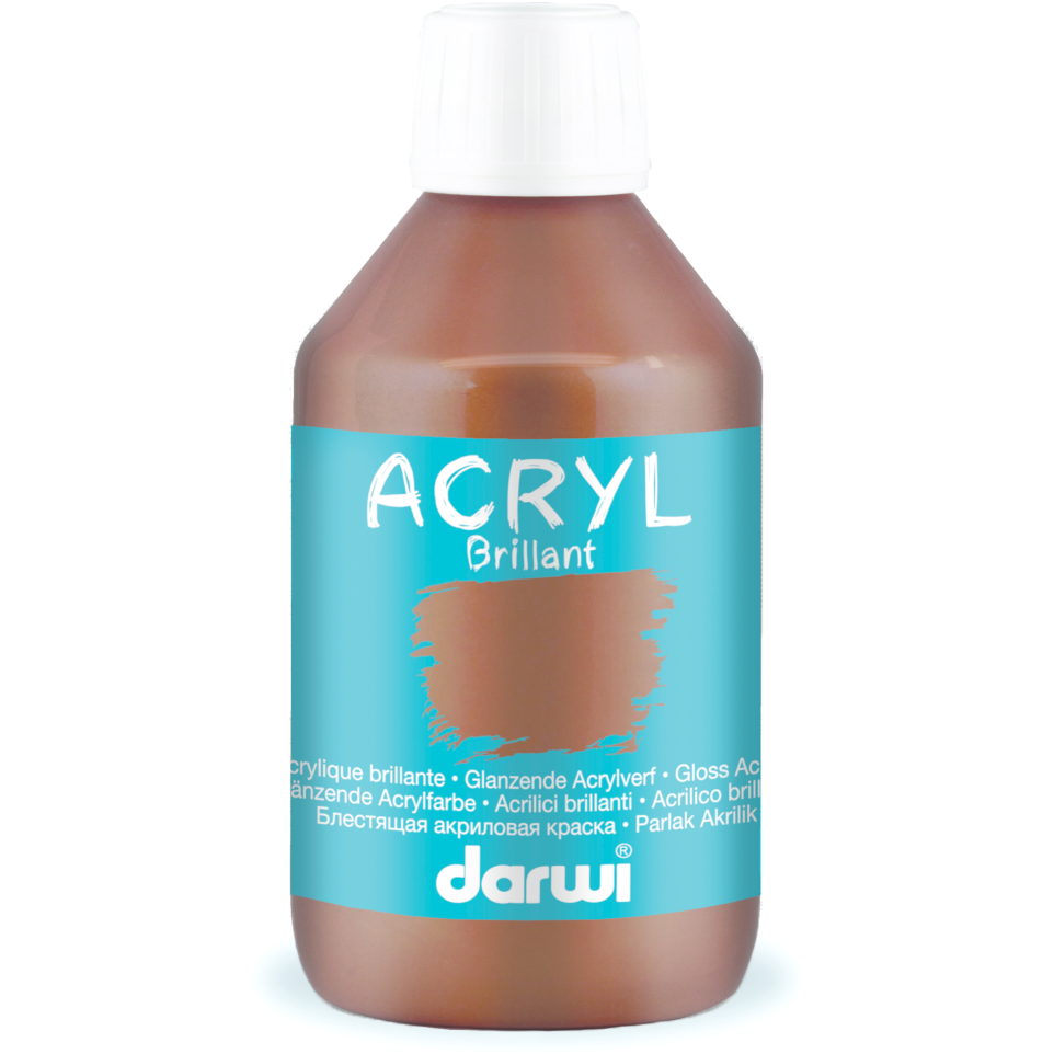 Darwi Flacon de 250 ml de Peinture Acrylique Universelle Brillante La peinture acrylique universelle DARWI offre de nombreuses possibilités créatives pour les artistes amateurs, professionnels et passionnés de loisirs créatifs. Idéal sur tous les supports, elle s'adapte à toutes les envies créatives ! Lisse et lustrée, cette finition BRILLANTE accentue les couleurs, les rendant plus vives et vibrantes. La gamme comprends 13 teintes miscibles, extrêmement brillantes et de viscosité moyenne. Nous recommandons un séchage lent pour un parfait rendu de surface. Avant utilisation, bien secouer le flacon. Il est également recommandé de dégraisser et nettoyer la surface à peindre. La peinture peut s'appliquer à l'aide d'un pinceau ou d'une éponge mais aussi directement au tube grâce à son embout-applicateur ajoutant ainsi du relief aux créations. La peinture se dilue et se nettoie à l'eau. Conserver le produit à une température comprise entre 5 et 25 degrés.