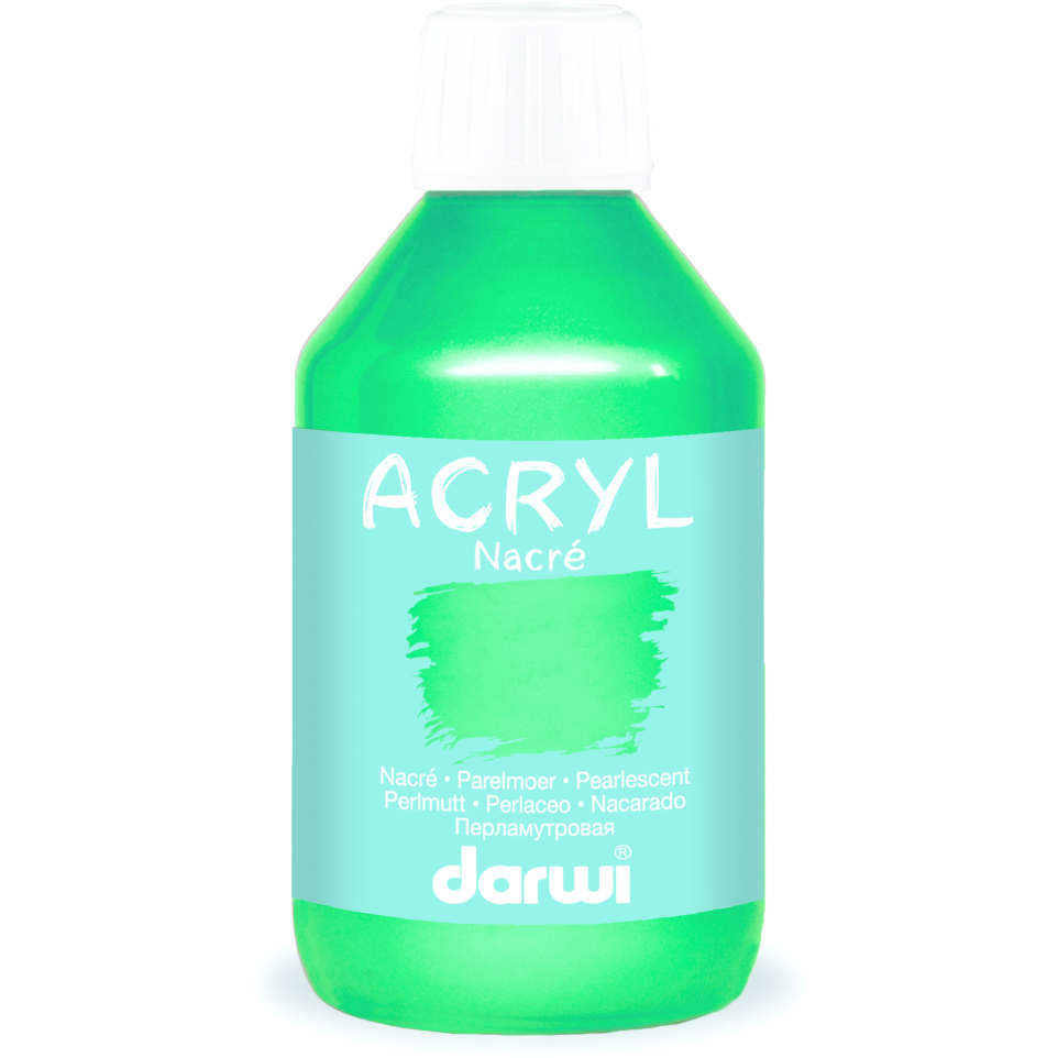 Darwi Flacon de 250 ml de Peinture Acrylique Universelle Nacrée La peinture acrylique universelle DARWI offre de nombreuses possibilités créatives pour les artistes amateurs, professionnels et passionnés de loisirs créatifs. Idéal sur tous les supports, elle s'adapte à toutes les envies créatives ! Les couleurs nacrées offrent une douce iridescence qui rappelle la lueur des perles. La gamme comprends 8 teintes miscibles, couvrantes et de viscosité moyenne. Avant utilisation, bien secouer le flacon. Il est également recommandé de dégraisser et nettoyer la surface à peindre. La peinture peut s'appliquer à l'aide d'un pinceau ou d'une éponge mais aussi directement au tube grâce à son embout-applicateur ajoutant ainsi du relief aux créations. La peinture se dilue et se nettoie à l'eau. Conserver le produit à une température comprise entre 5 et 25 degrés.