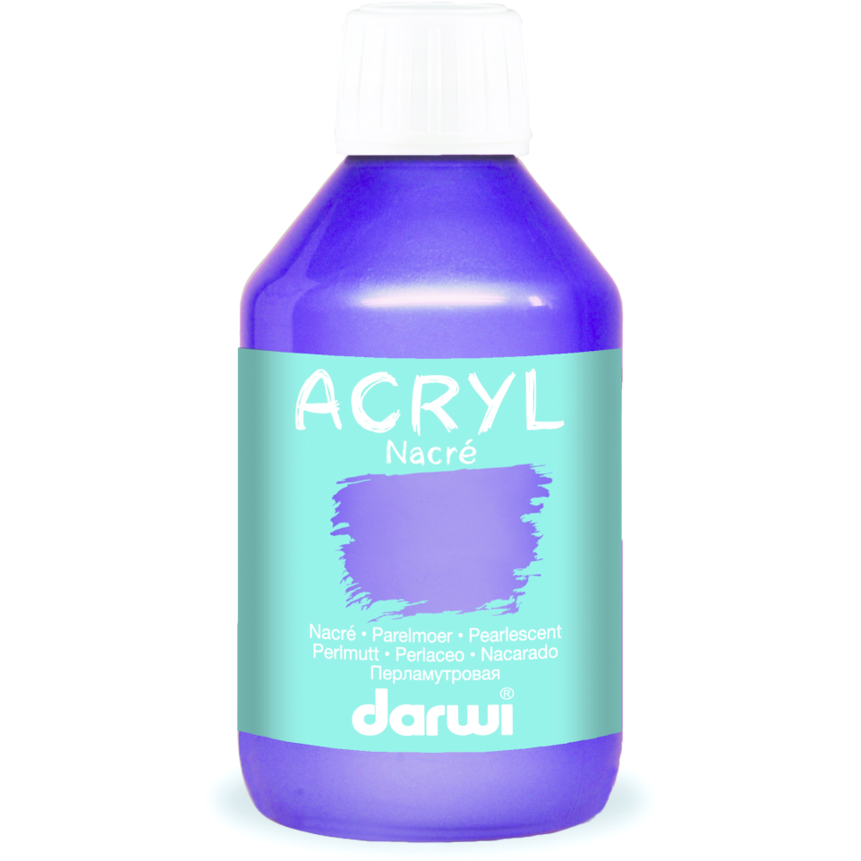 Darwi Flacon de 250 ml de Peinture Acrylique Universelle Nacrée La peinture acrylique universelle DARWI offre de nombreuses possibilités créatives pour les artistes amateurs, professionnels et passionnés de loisirs créatifs. Idéal sur tous les supports, elle s'adapte à toutes les envies créatives ! Les couleurs nacrées offrent une douce iridescence qui rappelle la lueur des perles. La gamme comprends 8 teintes miscibles, couvrantes et de viscosité moyenne. Avant utilisation, bien secouer le flacon. Il est également recommandé de dégraisser et nettoyer la surface à peindre. La peinture peut s'appliquer à l'aide d'un pinceau ou d'une éponge mais aussi directement au tube grâce à son embout-applicateur ajoutant ainsi du relief aux créations. La peinture se dilue et se nettoie à l'eau. Conserver le produit à une température comprise entre 5 et 25 degrés.