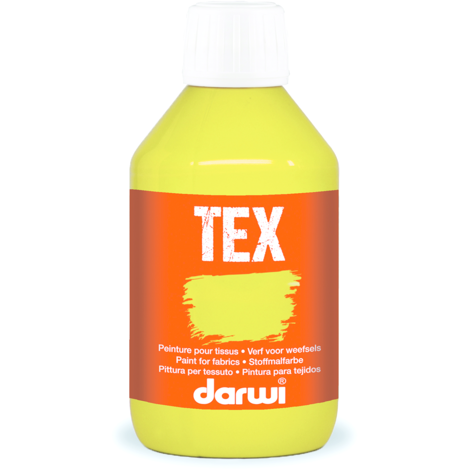 DARWI Flacon de 250 ml de Peinture Textile Opaque Customiser un accessoire ou redonner vie à ses anciens vêtements, c'est possible grâce à la peinture textile ! Formulée à base d'eau et prête à l'emploi, la peinture est facile à utiliser et non toxique. Polyvalente, elle adhère à une très grande variété de tissus naturels (coton, lin, jute, laine et soie) et synthétiques, qu'ils soient clairs ou foncés, fins ou épais. Les couleurs sont miscibles, permettant ainsi de créer de nouvelles teintes. Sa texture crémeuse permet de réaliser des traits précis et des mélanges subtils. Sa composition offre une excellente adhérence aux fibres du tissu tout en préservant sa souplesse et offre une prafaite résistance aux lavages (maximum 60%). Cette finition OPAQUE couvre complètement la surface sans laisser transparaitre la couleur de base. 30 teintes miscibles, mates, ext rêmement couvrantes. Mode d'emploi : Bien secouer le flacon avant utilisation. Polyvalente et facile à utiliser, cette peinture s'applique à l'aide d'un pinceau, d'une pipette ou d'un pochoir. Pour une adhérence optimale, prélaver le tissu avant application de la peinture, en évitant l'utilisation d'assouplissant. Toujours s'assurer que le textile est propre et sec avant application. Pour rendre la réalisation indélébile, après séchage, repasser le tissu à l'envers à l'aide d'un fer pendant 5 minutes, sans vapeur, dans la position adaptée au tissu. Utiliser l'opacifiant pour créer des tons plus ou moins couvrants selon la couleur du textile à peindre. (proportion du mélange : 50% - 50%)