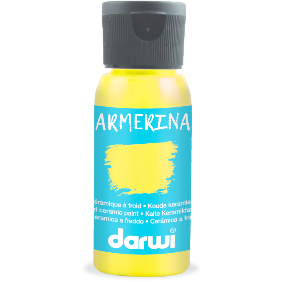 DARWI Flacon de 50 ml de Peinture sur Céramique à Froid Polyvalente, la peinture adhère à une très grande variété de surfaces : faïence, porcelaine, carrelage ou autres matériaux en céramique. Les couleurs sont miscibles, permettant ainsi de créer de nouvelles teintes. La peinture sèche à l'air libre en 48h et ne nécéssite pas de cuisson. Elle est non alimentaire et est déstinée principalement à la décoration. Sa résistance au lave-vaisselle jusqu'à 65° garantie une couleur durable dans le temps. La gamme comprends 18 teintes miscibles, brillantes après séchage. Les composants de cette peinture réagissent avec la silice du verre et se fixent à la matière, aucune cuisson n'est donc nécéssaire. Avant utilisation, bien secouer le flacon. Il est également recommandé de dégraisser et nettoyer la surface à peindre. La peinture peut s'appliquer à l'aide d'un pinceau ou d'une éponge mais aussi directement au tube grâce à son embout-applicateur ajoutant ainsi du relief aux créations. La peinture se dilue et se nettoie à l'eau. Conserver le produit à une température comprise entre 5 et 25 degrés. La peinture céramique est fluide, pour un rendu plus opaque, ne pas hésiter à passer plusieurs couches de peinture. Utiliser le médium pour diluer les couleurs et les rendre ainsi encore plus transparentes.