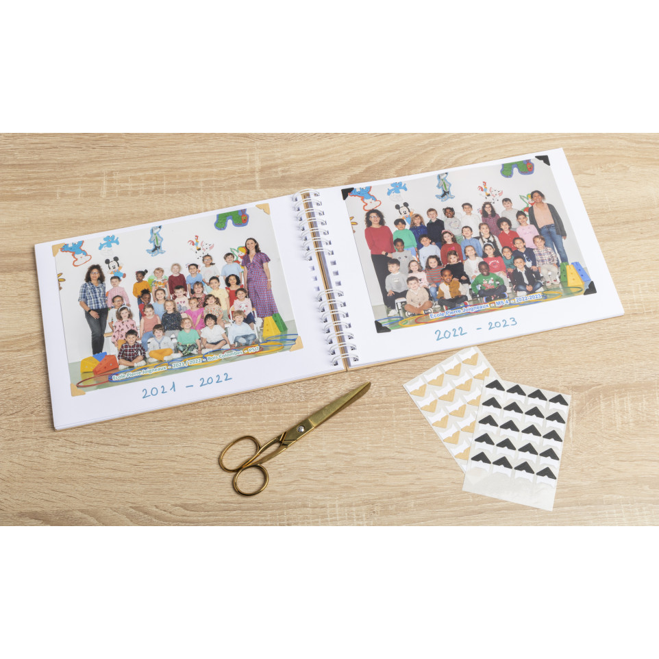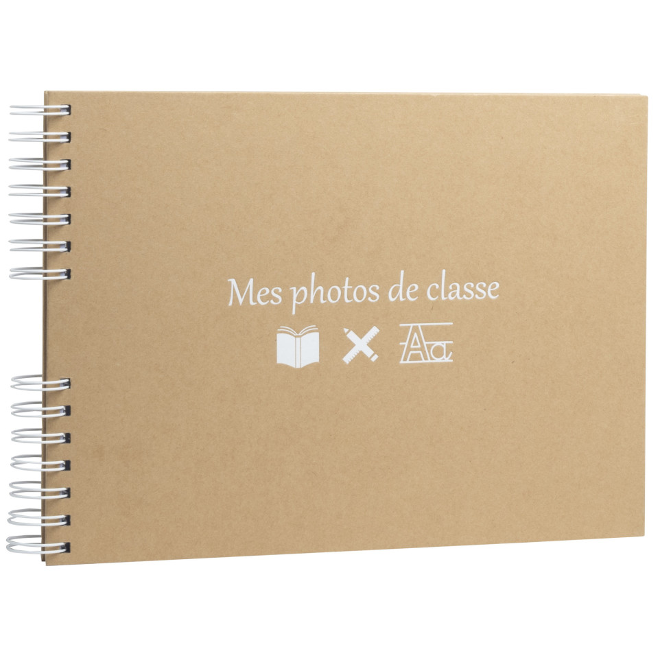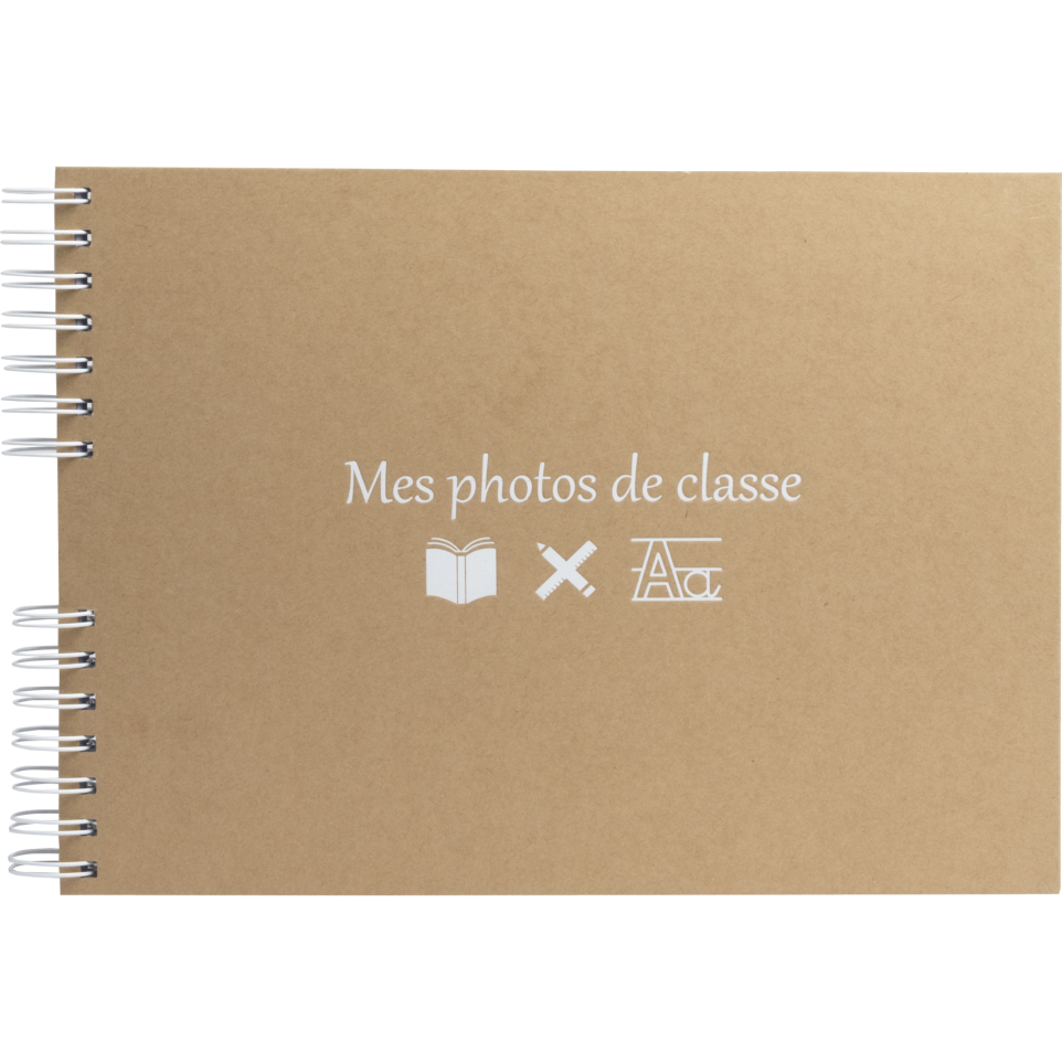 Spiral Photo Album 50 White Pages for Kraft Classroom Photos A very beautiful spiral photo album, which allows you to store and present your class photos from kindergarten to larger classes. Kraft paper cover highlighted with white marking. The interior pages of the album are made from rigid 250g/m2 white card. With its high quality paper, this album allows excellent conservation of photos. The 32x22cm 50-page white spiral album allows you to store 50 class photos or 150 10x15cm format photos. The 32x22cm spiral album is a practical and aesthetic format, particularly for presenting large format photos, and has a good photo presentation capacity. This product designed in Paris and manufactured in France has a high ecological dimension thanks to its FSC® certification.