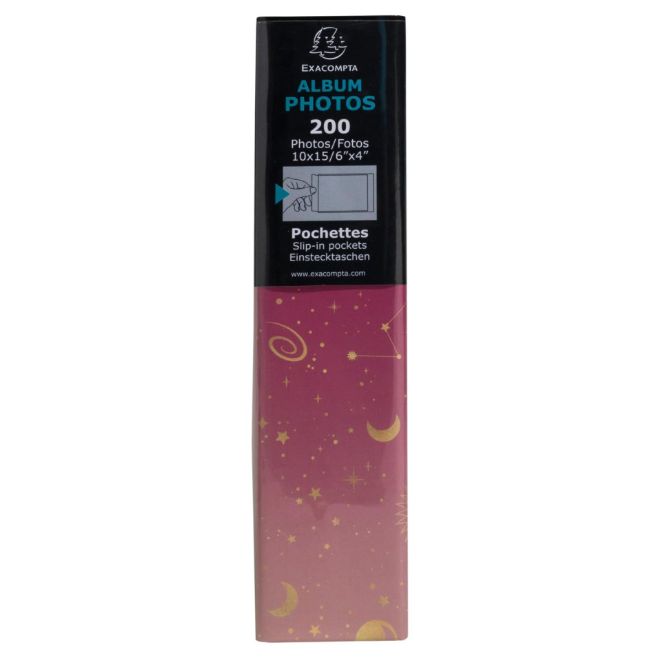 Exacompta Photo Album 200 Pockets 22.5x22 Hard cover photo album with a glossy finish and moon themed gold print for storing standard 10 x 15cm size photographs, High quality crystal clear pockets so photos can be easily viewed and kept in perfect condition. Holds up to 200 photos giving plenty of storage for memories from holidays, family birthdays, weddings and special occasions, Each page can display up to two 10 x 15cm photo prints on each side with space to write captions or messages. Modern and stylish 22.5 x 22cm photo book ideal for displaying, sharing and storing photos on bookshelves, coffee tables or in a photo box, The protective pockets prevent fingerprints and damage to the photos while being viewed. This photo album can be given as a gift for birthdays, weddings, baby showers, hen parties and to welcome a new baby, Personalise by filling with your own photos, postcards and messages to gift special memories to family and friends. Made from FSC-certified (FSC-C002321) paper and cardboard, By choosing this photo book you are supporting responsible management of the world#s forests for a sustainable choice of photo storage.