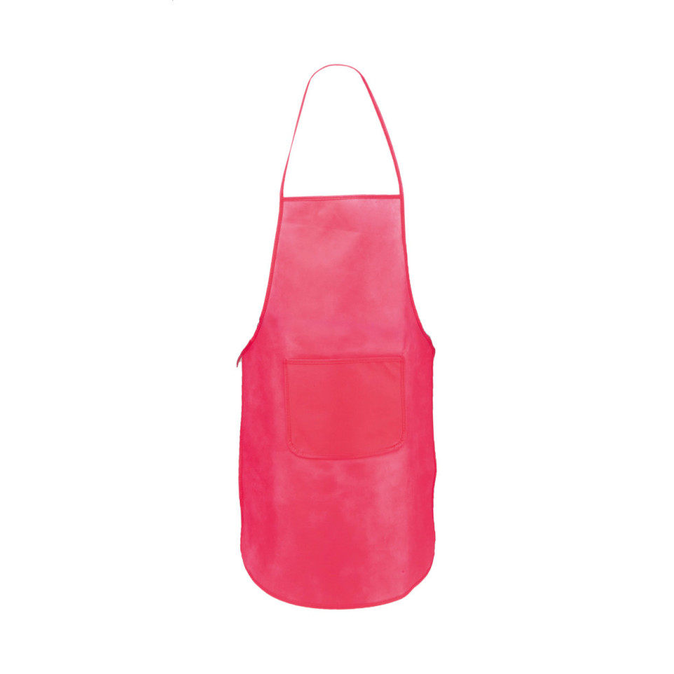 The Madeline pink apron is a lightweight, non-woven apron designed for daily use in kitchens, workshops, and events. Featuring a practical front pocket, it blends functionality and style for personal or professional environments.