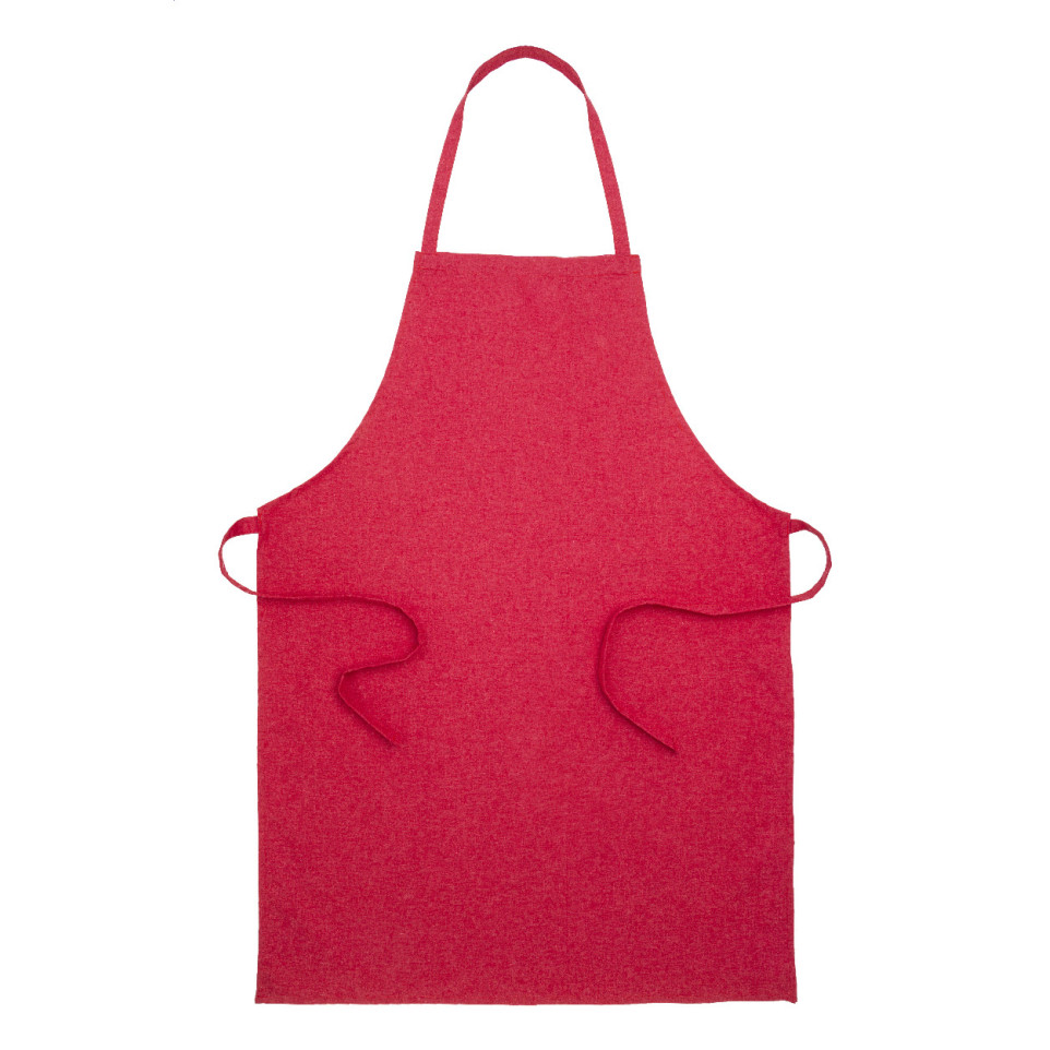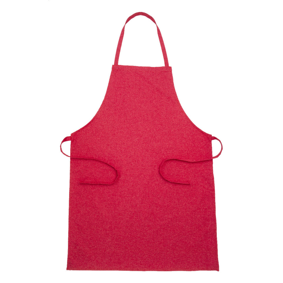 Red kitchen apron crafted from 70% recycled cotton and 30% RPET polyester, 180 g/m². Ideal for everyday cooking, bakery work, or hospitality environments where comfort and sustainability matter.