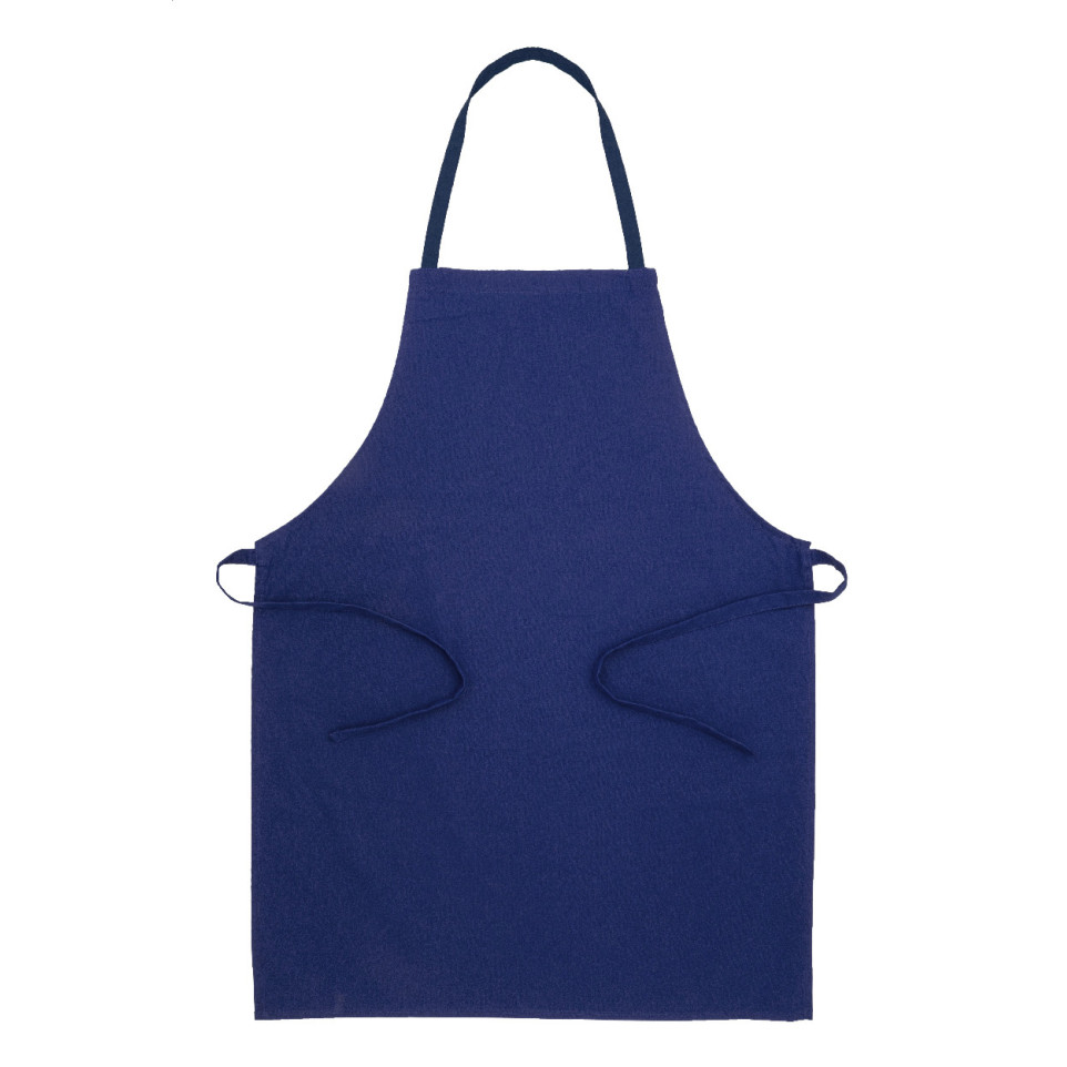 Dark blue apron made from 100% cotton, ideal for kitchen, catering, or food service use. Comfortable to wear and easy to care for, it provides classic coverage for cooking or hospitality environments.
