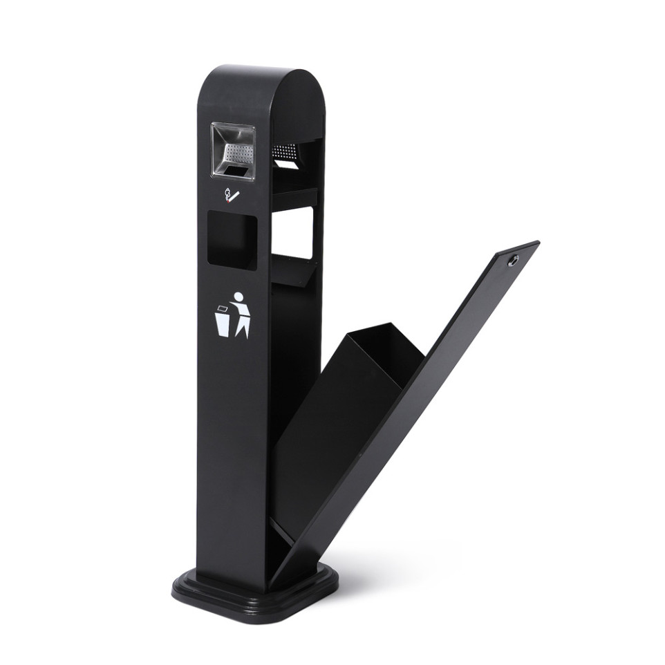 The Freestanding Ashtray with Bin is a dual-purpose unit designed for convenient cigarette disposal and general waste collection. Ideal for outdoor public spaces or smoking areas.