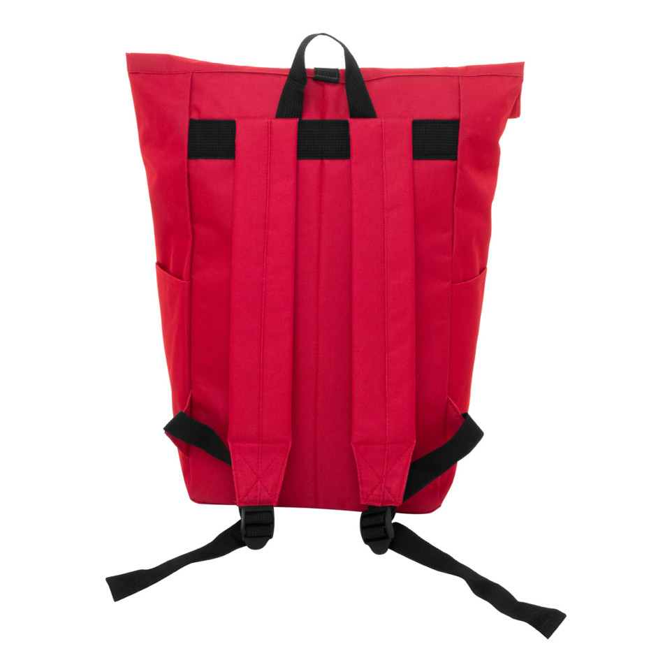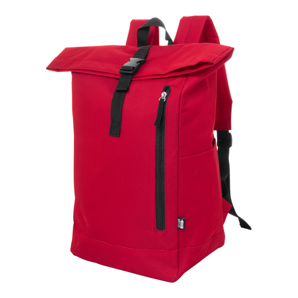 The Reback RPET backpack combines eco-friendly materials with practical design, featuring a stylish rolltop closure secured by a buckle. Perfect for daily commuting, work, or casual outings while making a sustainable choice.