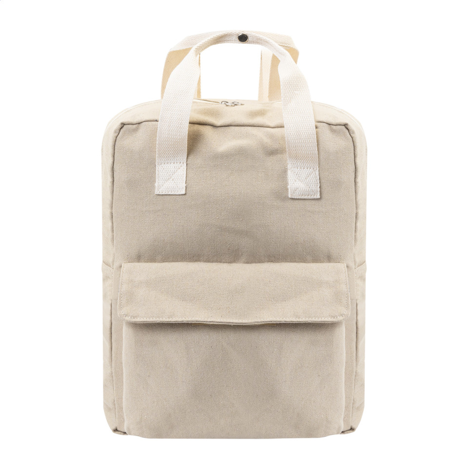 What are the material composition and environmental benefits? The backpack combines 70% recycled cotton with 30% RPET polyester, utilizing post-consumer materials to reduce waste and environmental impact without compromising durability or functionality.