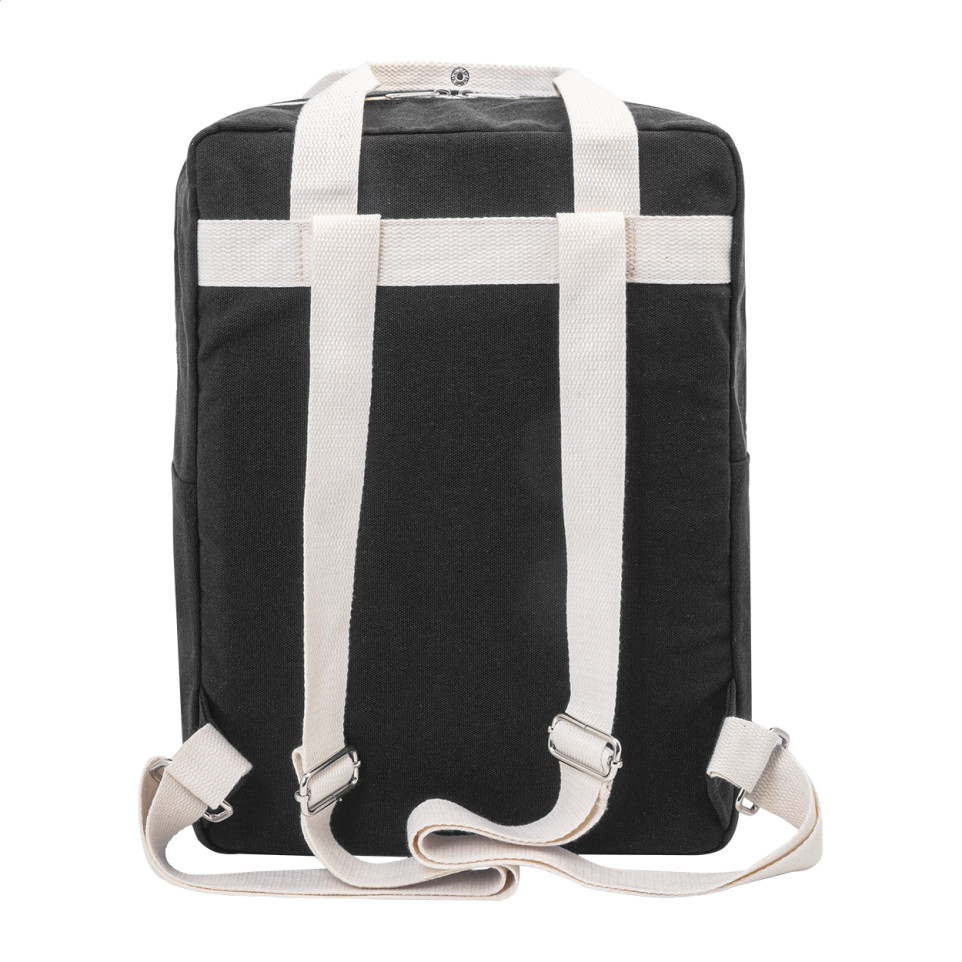1. [What materials is the backpack made from? - 70% recycled cotton and 30% RPET polyester canvas.]
