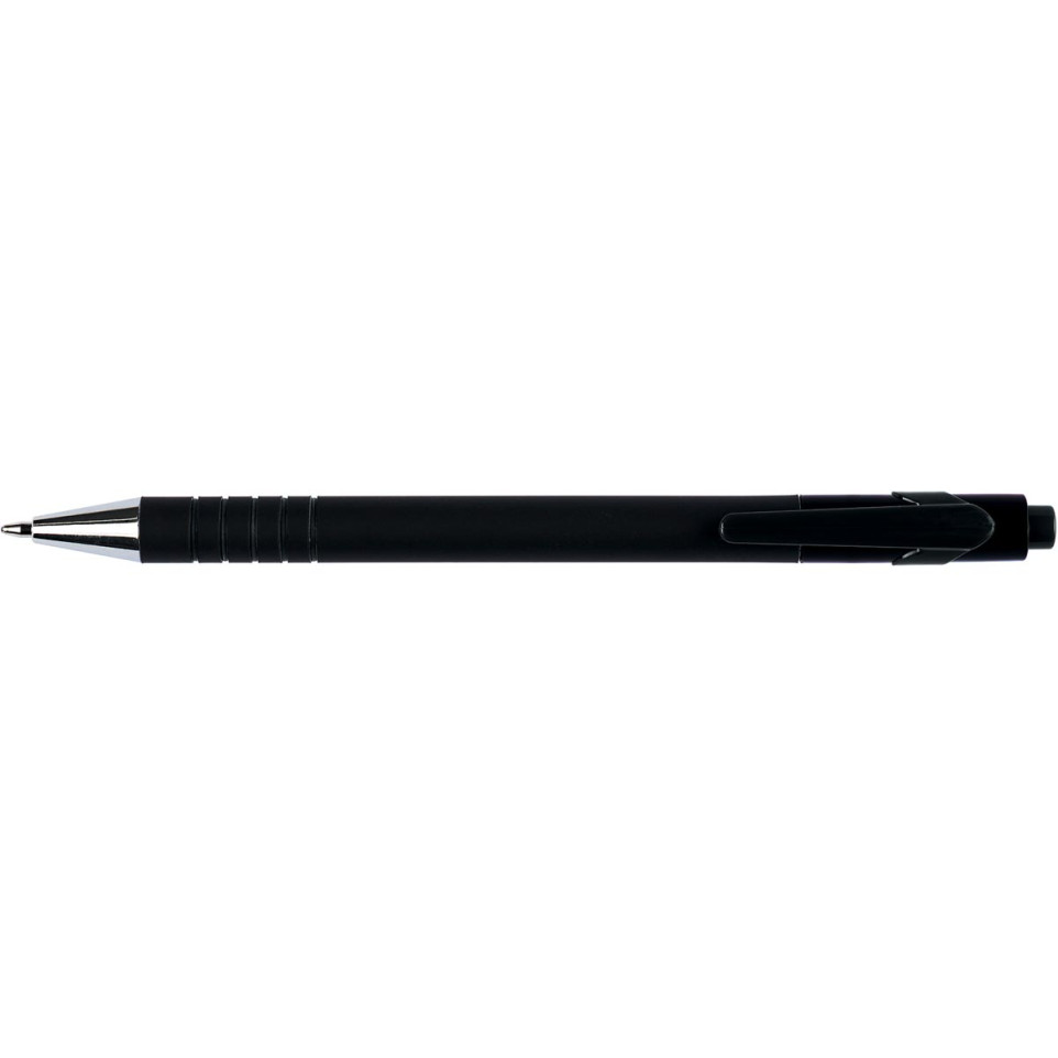 - Sleek plastic body with rubberized surface matching the ink color; integrated plastic clip for portability.