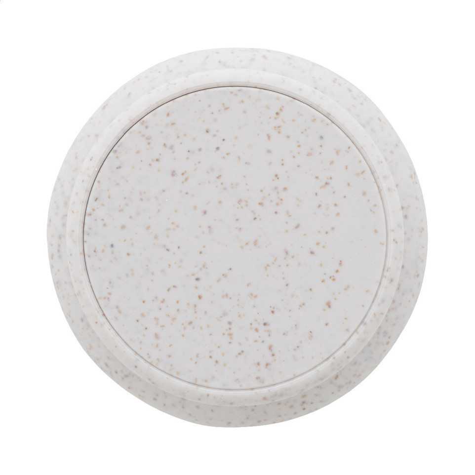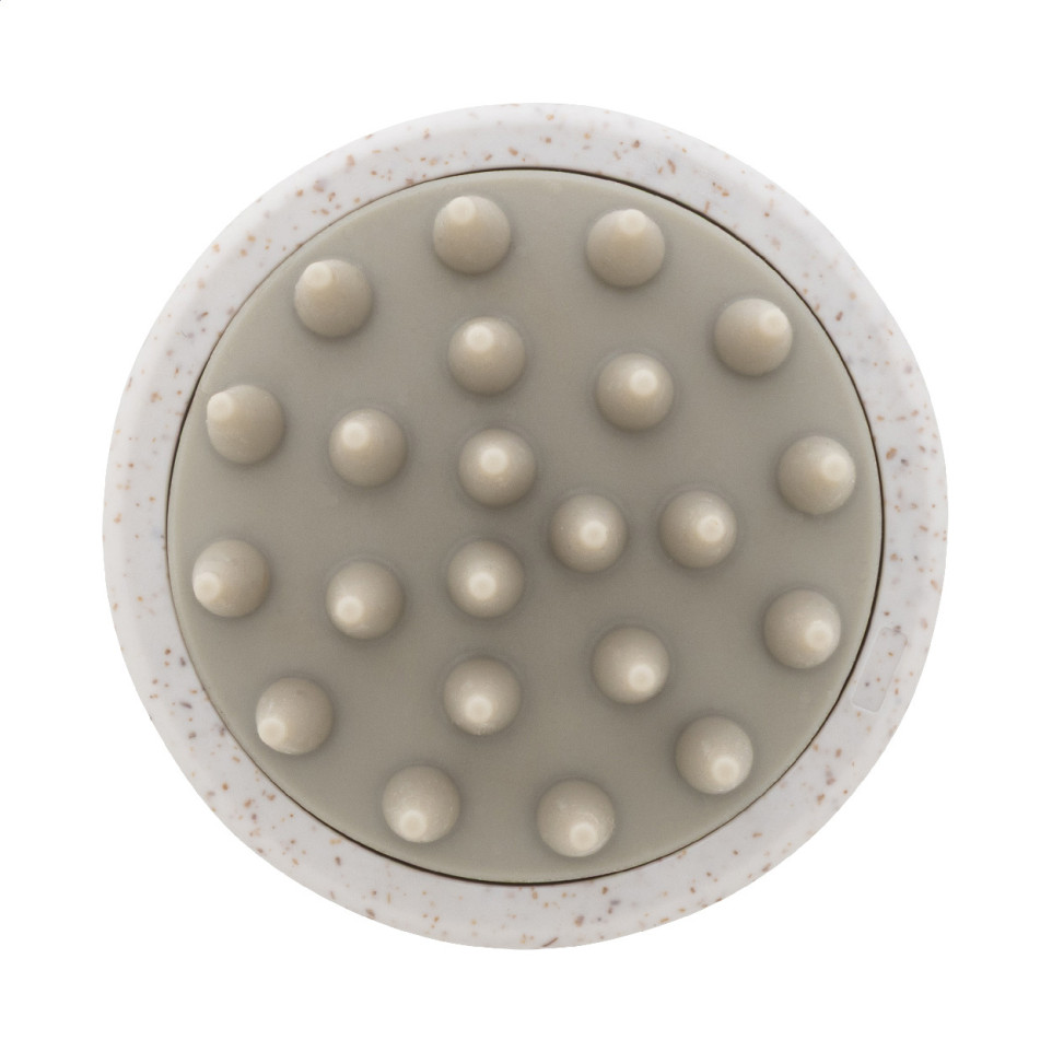 The massager is made from ecological wheat straw plastic and silicone bristles.