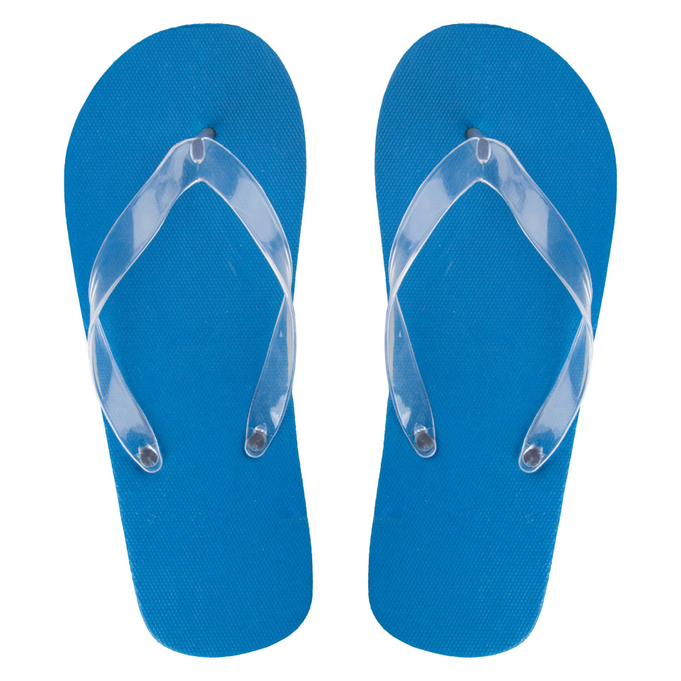 CreaPlaya transparent customisable beach slippers feature a comfortable PE sole with durable PVC straps. These versatile flip-flops are assembled according to your requested color combination for both sole and straps, perfect for beach outings and summer promotions.