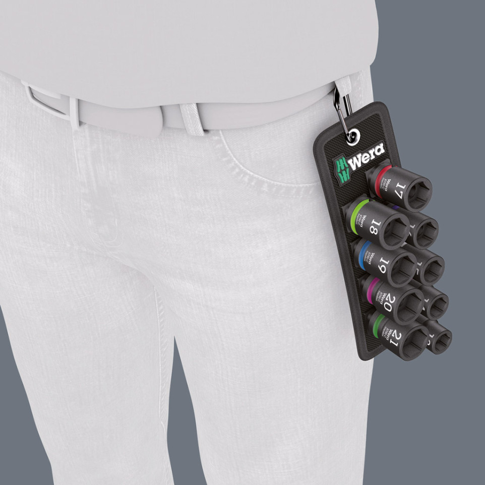 Select the desired socket size from the magnetic strip and attach it securely to your 1/2" drive impact wrench. The special Impaktor design absorbs torsional peaks during operation while ensuring maximum torque transmission without damaging fasteners or tools.[3][4]