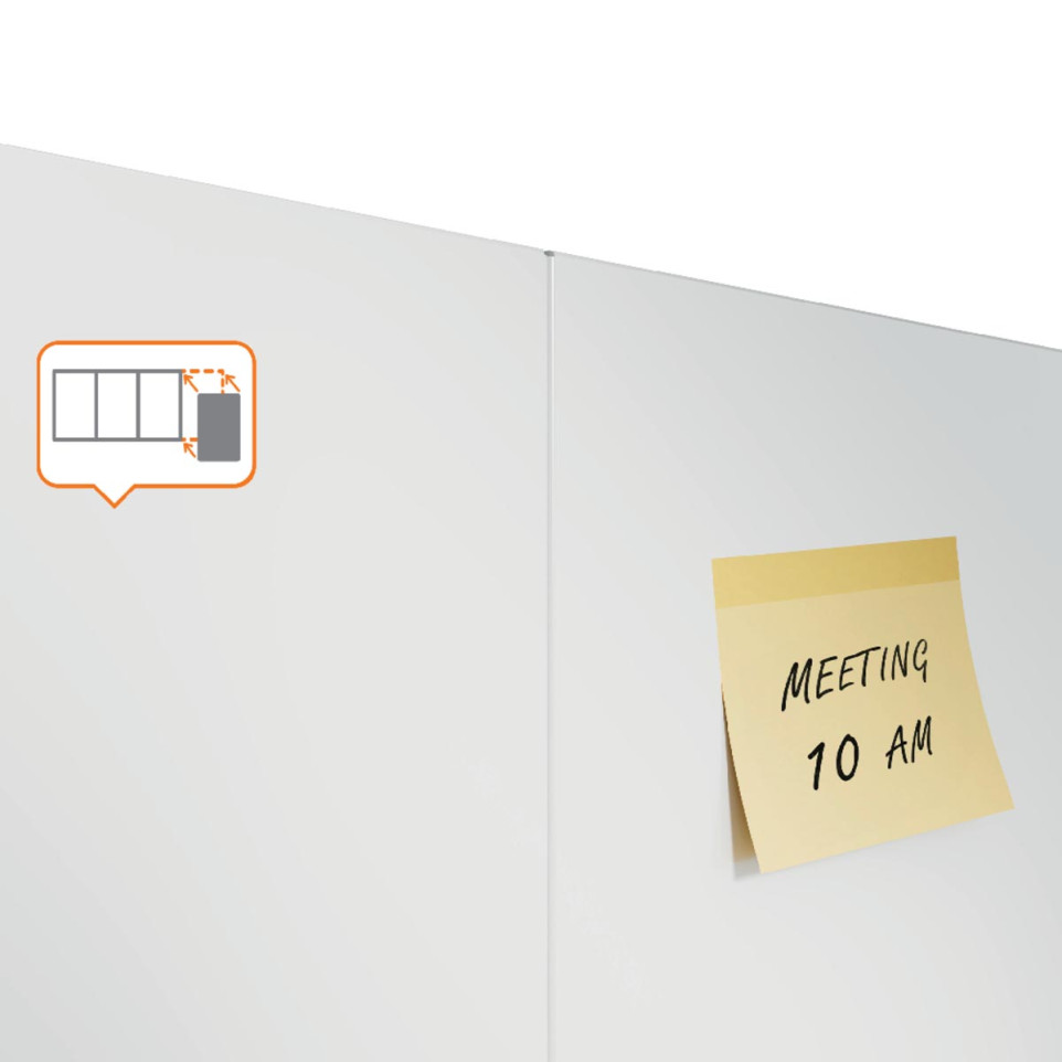 Mount the whiteboard on your wall using the included magnetic system for accurate alignment and a clean appearance. Write with standard dry-erase markers, attach notes with magnets, and combine multiple Infinity boards to create a larger writing space tailored to your environment.