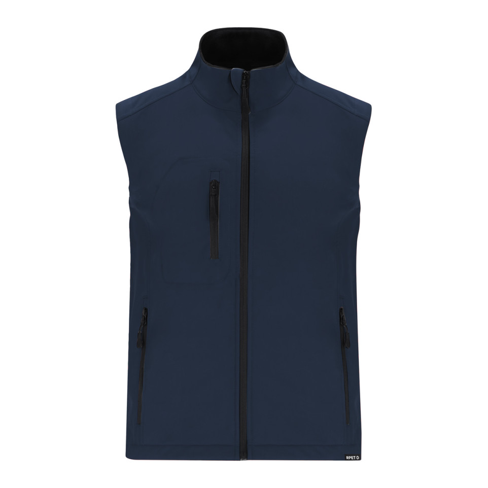 Triple-layer, windproof and waterproof softshell bodywarmer vest in dark blue, size XL. Designed for versatile outdoor and professional use where comfort and reliable weather protection are key.