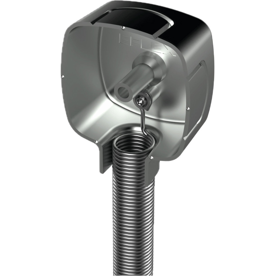 The stainless steel spring and design features prevent cable pinching, and the cover secures cables against external stresses.