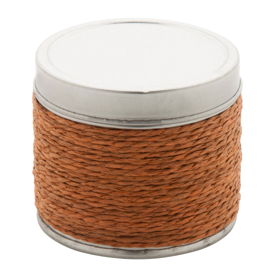 Yes, the tin is wrapped with string, adding a distinctive and stylish appearance.