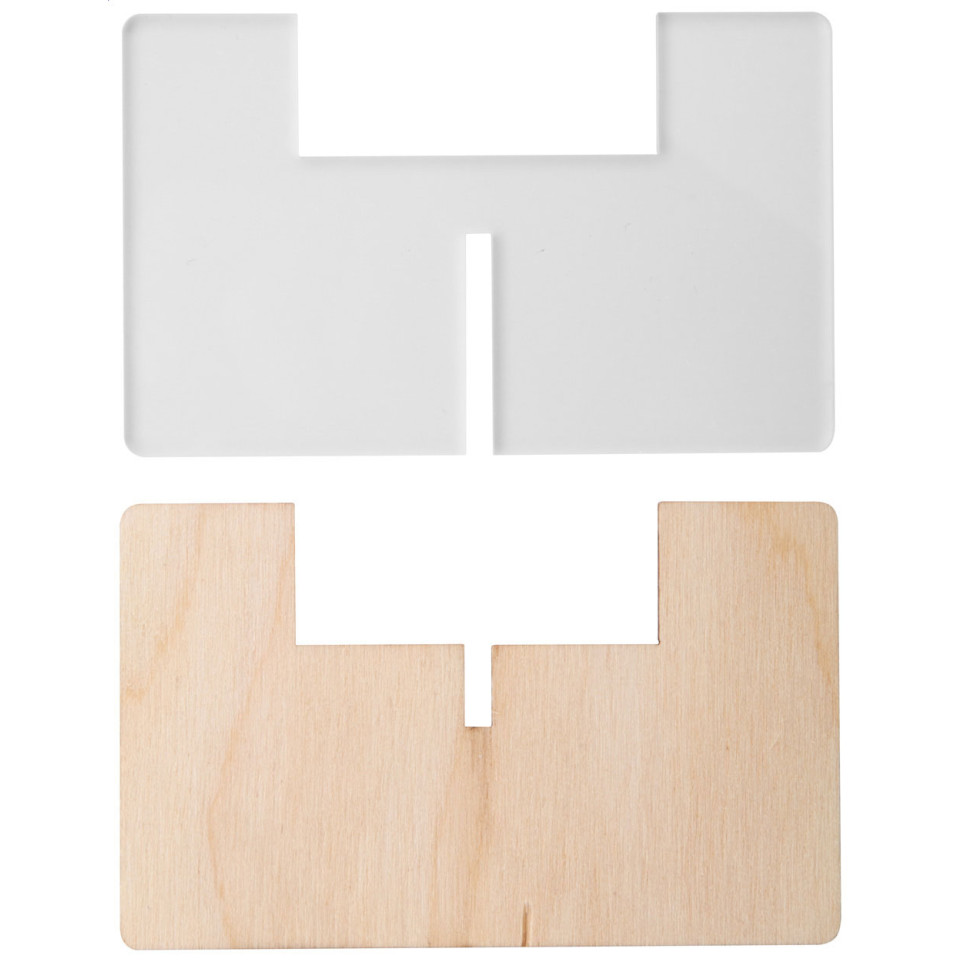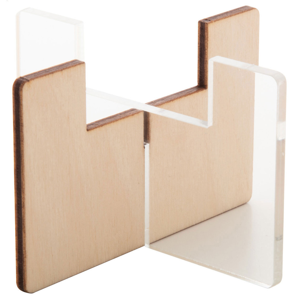 Elegant tea light candle holder crafted from birch plywood and transparent acrylic materials. This modern home accessory creates a warm, ambient atmosphere while showcasing contemporary design.