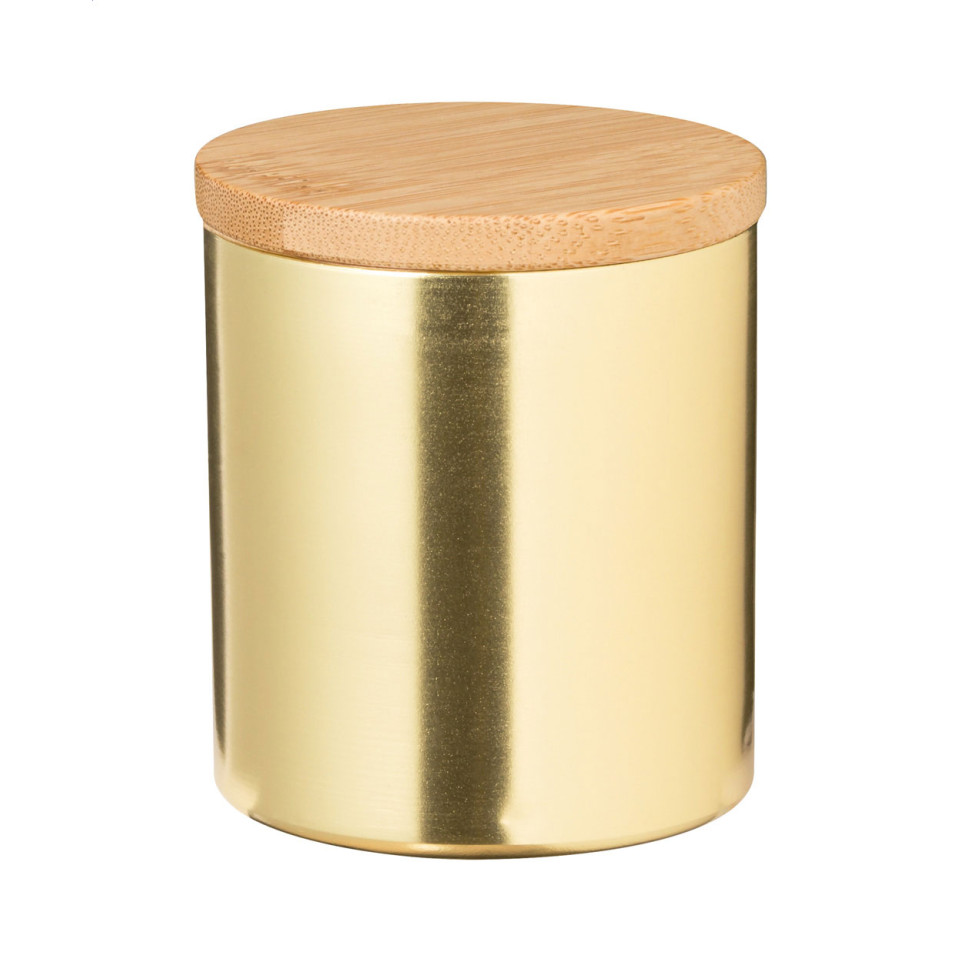 - Crafted with premium aluminum holder in sophisticated gold finish with a sustainable bamboo lid