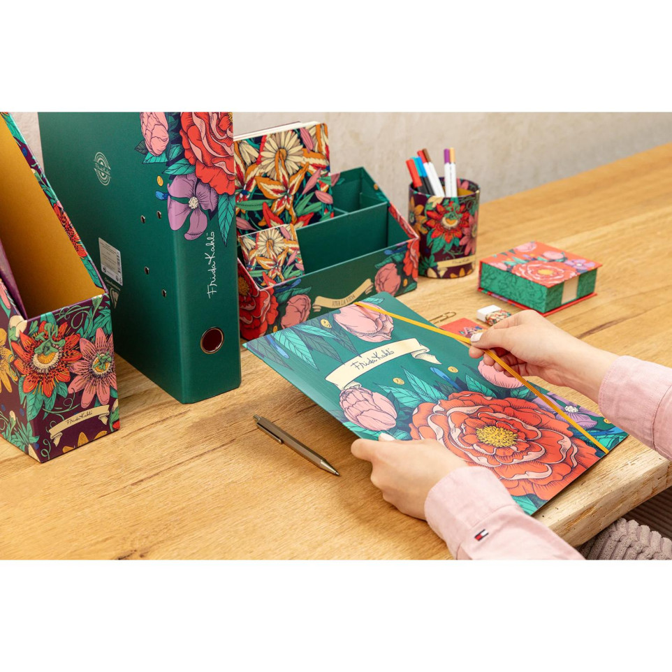 Frida Kahlo Elasticated Folder 24x32cm Dive into the vibrant and inspiring world of Frida Kahlo with our collection that pays tribute to this iconic artist. Passionate, c reative, timeless and unique, Frida is an emblem of art and freedom of expression. This collection celbrates the strength, resilience and beauty of her work, with each piece embodying the bold spirit and boundless creativity of the iconic Mexican artist. Adorned w ith floral designs and vibrant colours. This folder is perfect for organising documents, and is perfect for keeping papers secure and in place. Elastic closure allowing the folder to securely close, accomodating a range of document thicknesses. Ideal for students, professionals or anyone needing to organise papers, artwork or documents. Assorted patterns.