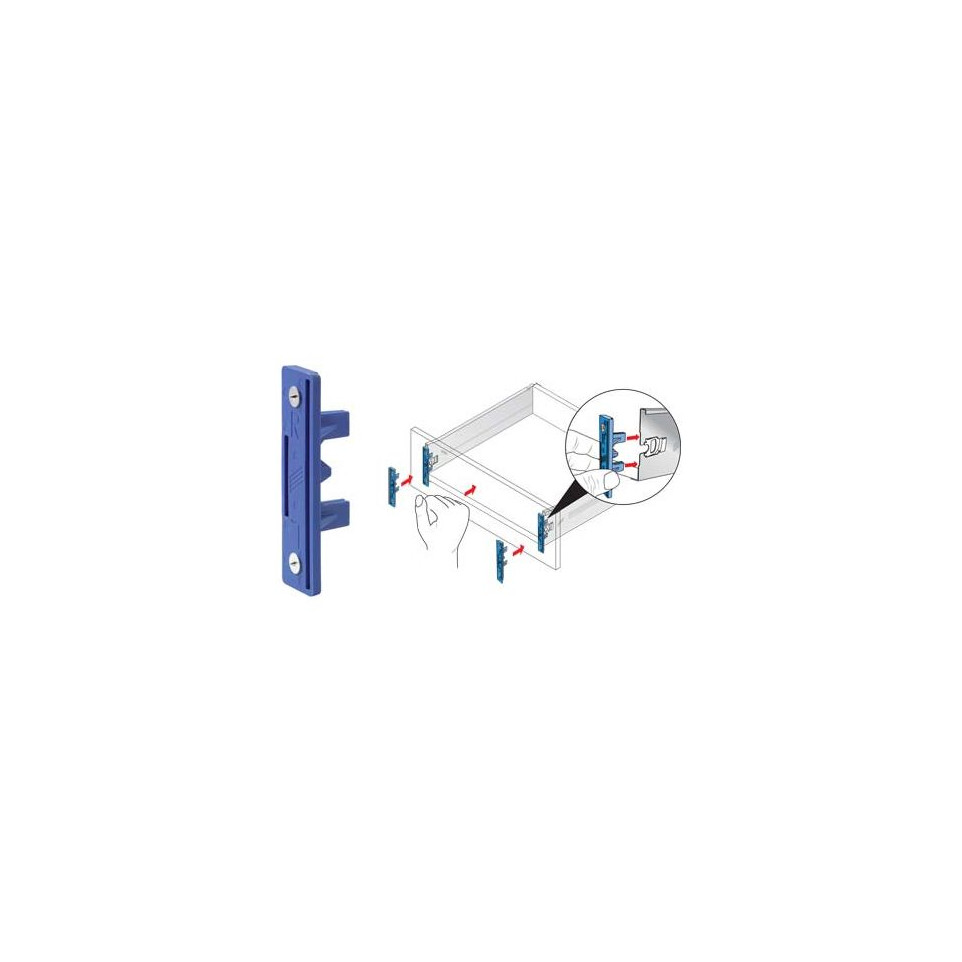 The Gabarit de perçage Hettich BLUEJIG MT / pce is a centering template for drawer, designed to ensure precise and efficient drilling operations.