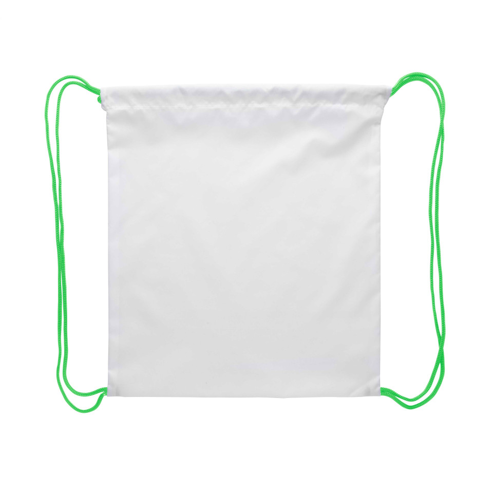 View products in the same categoryCustom-made green and white drawstring bag designed for children, made from 190T polyester with coloured strings and all-over sublimation printed graphics. Ideal for children’s daily activities, swimming lessons, or school sports.