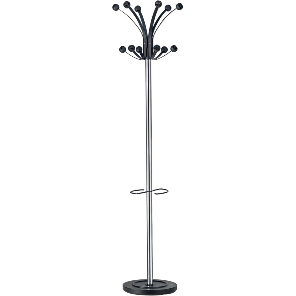 The Unilux Hakea Coat Rack and Umbrella Stand combines a rotating head with 12 anti-slip hooks and an adjustable umbrella holder, offering a practical storage solution for coats and umbrellas in office or reception areas.