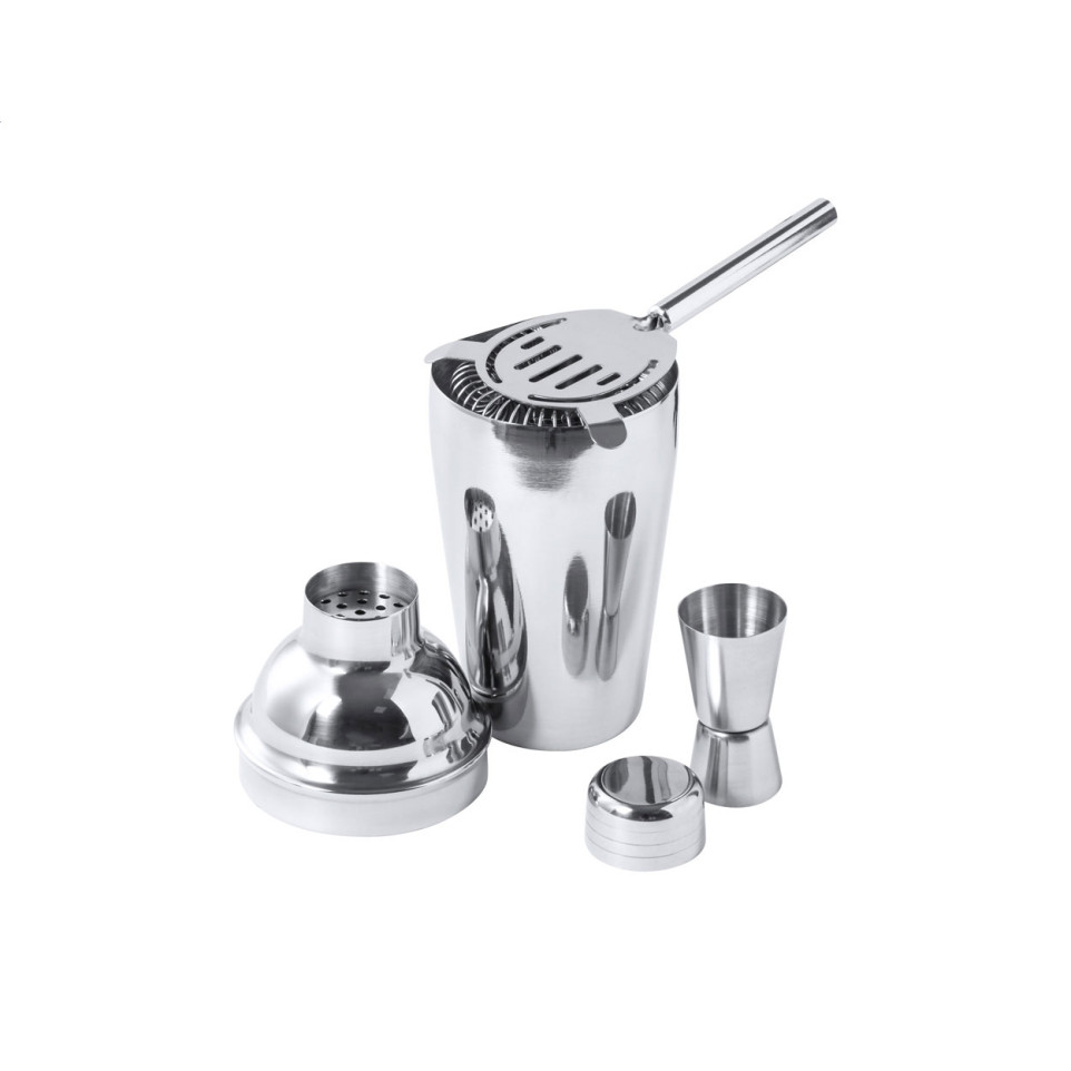 What is the material and finish of the cocktail set? The entire set is crafted from high-quality stainless steel with a polished silver finish that resists corrosion and maintains its appearance over time.