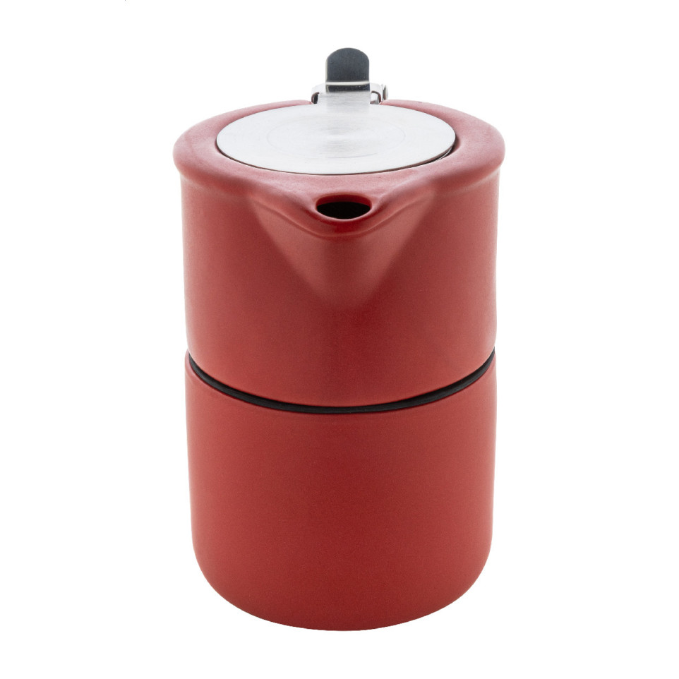 The Gongmei red tea set features a high quality ceramic teapot (430 ml) with a stainless steel lid and tea strainer, stacked neatly on a matching mug (400 ml). Ideal for offices, client meetings, or hospitality settings.