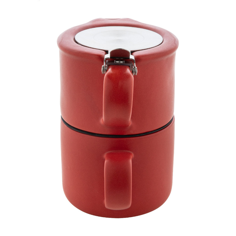 - The teapot and mug are designed to stack for efficient storage