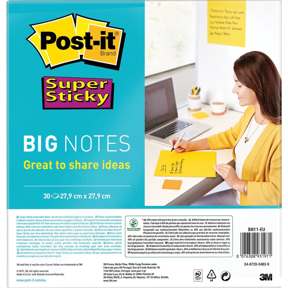 Post-it Super Sticky Big Notes are ideal for brainstorming sessions, project planning, and everyday note-taking. They are perfect for large-scale ideas and detailed information.