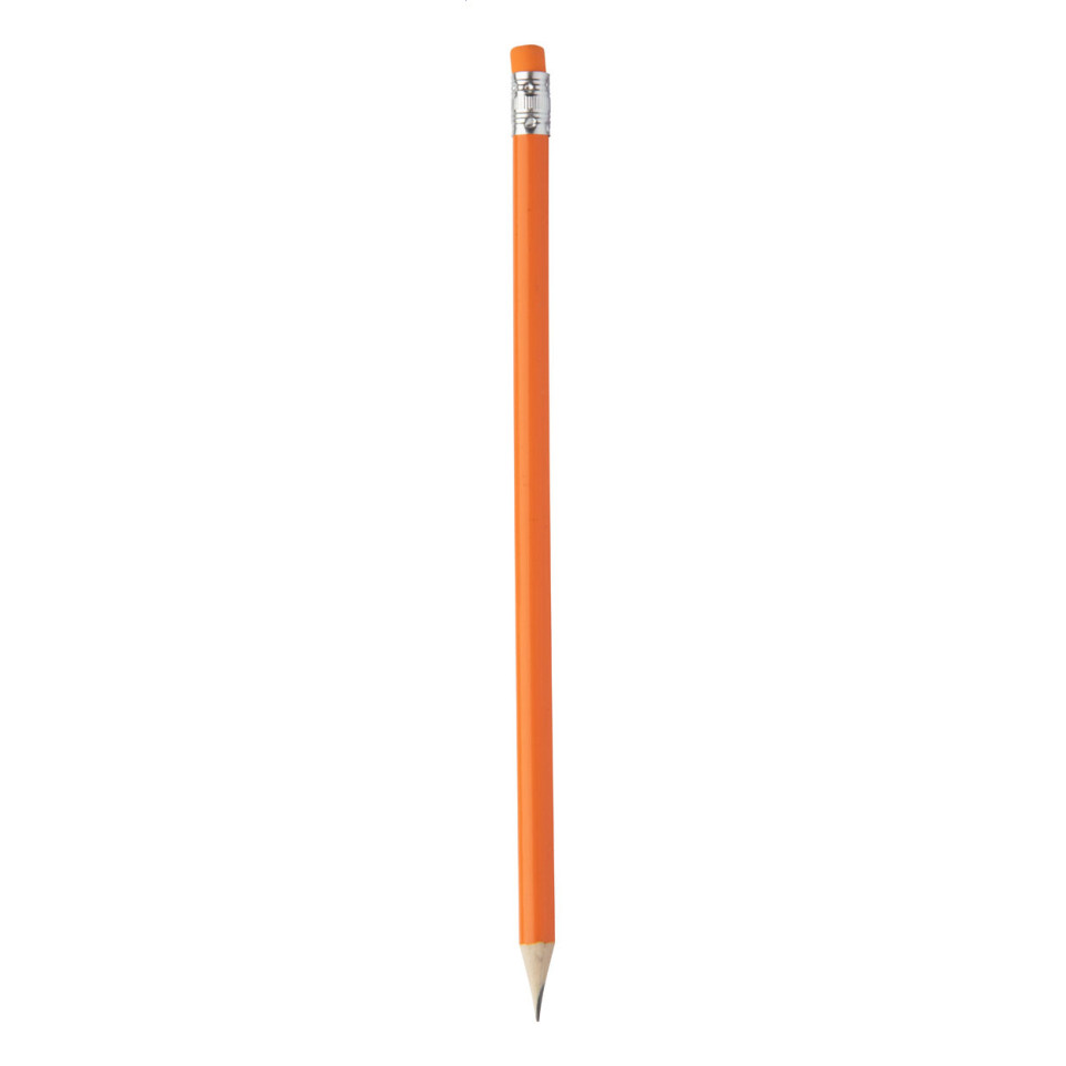 Wooden orange pencil with a matching eraser on top, pre-sharpened and ready to use. Perfect for drawing, sketching, writing notes, or coloring projects in educational or professional settings.