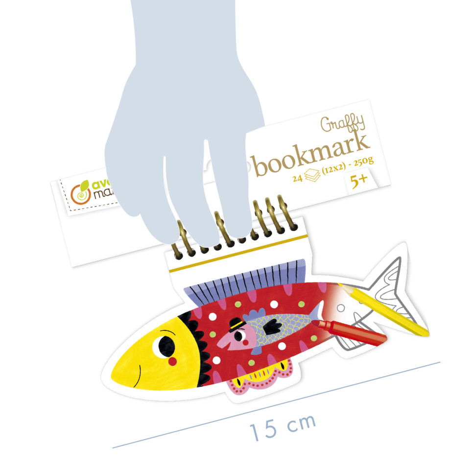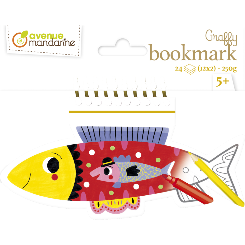 Graffy Bookmarks, Poisson De jolis marque-pages à la forme à colorier et à personnaliser. A garder comme autant de petits trésors ou à offrir avec amour ! Papier 250g, 12 dessins répétés 2 fois. Certifié PEFC pour une gestion raisonnée des forêts. Conforme aux normes CE.
