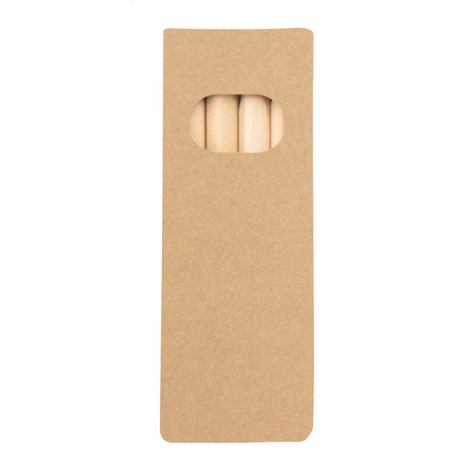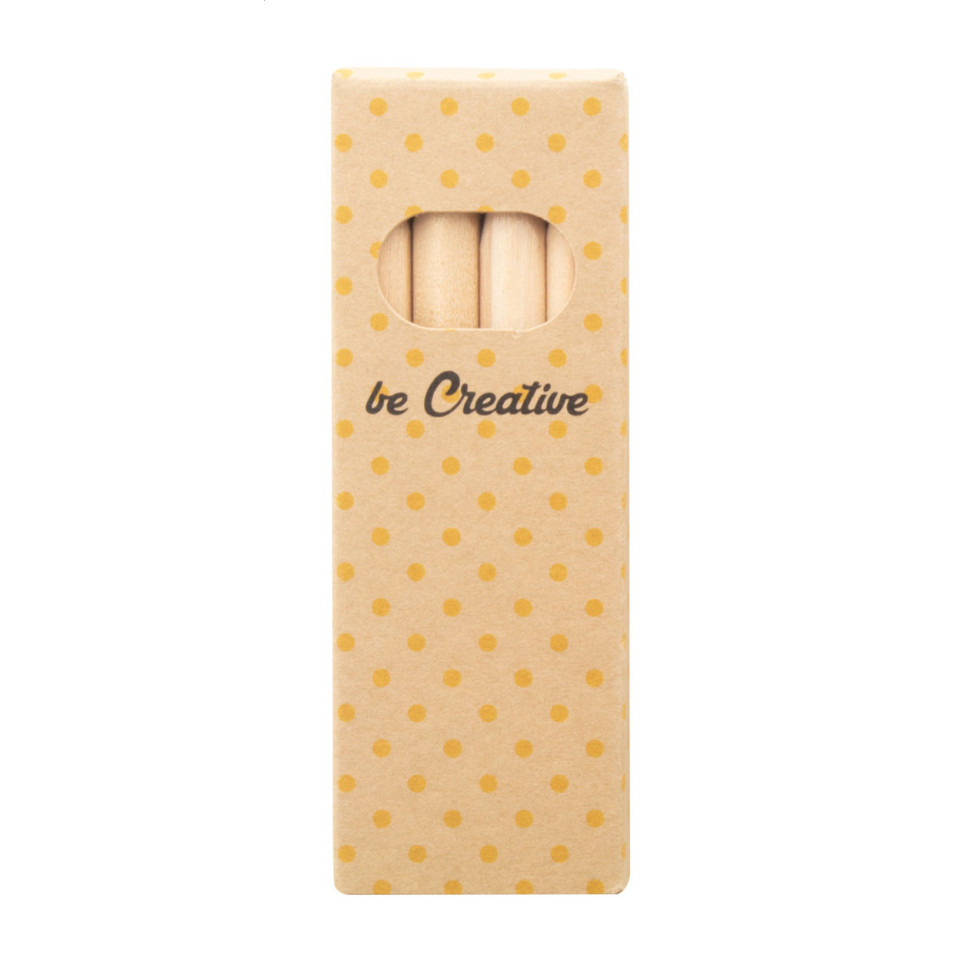 The pack contains four natural wooden coloured pencils in a custom printed kraft paper box.