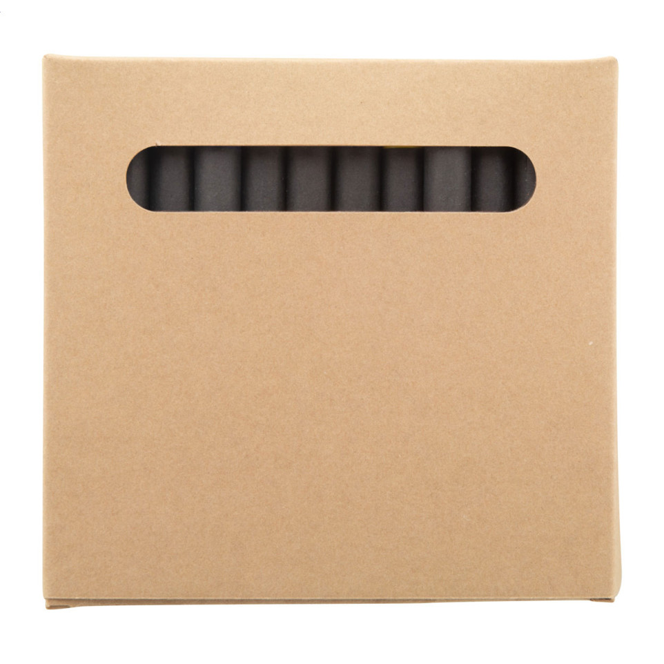 The crayons are wrapped in black paper and stored in a kraft paper box made from 300 g/m² material.