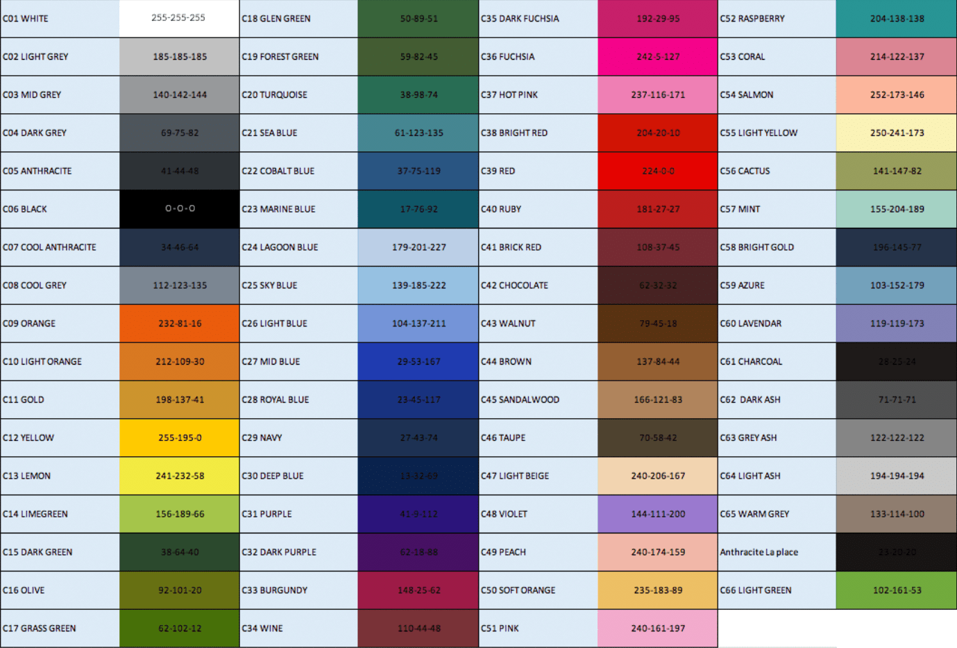 Your carpet will be printed with the following colors: