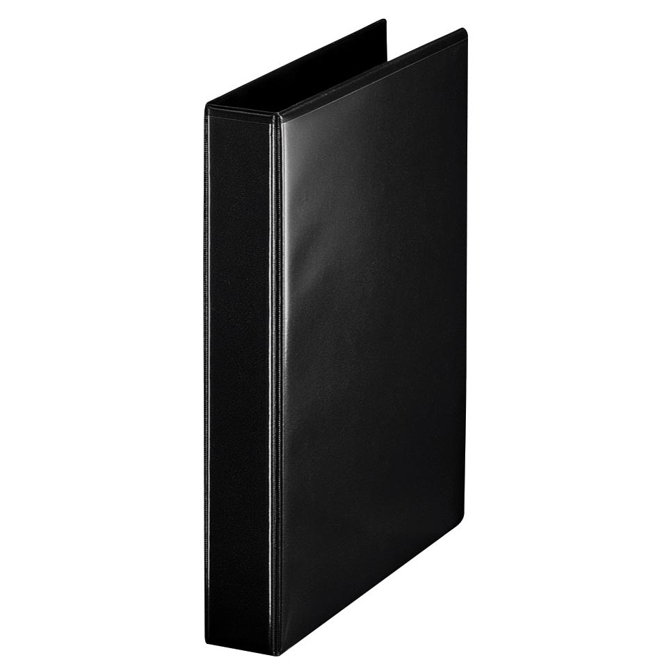 Customizable Esselte ring binder with a 5.1 cm spine, designed for standard A4 sheets (25.7 x 31.9 cm). Features 4 D-shaped rings of 30 mm, and a sleek black finish suitable for professional archiving or presentations.