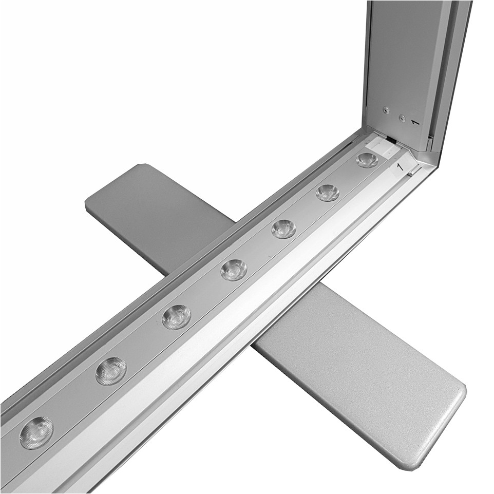 The Totem Textile Lightbox is easy to assemble without tools. The image (sold separately) attaches using a silicone strip. The stand comes with a carrying bag.