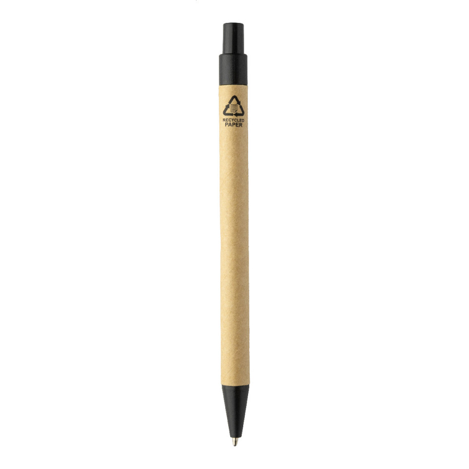 The set is made entirely of recycled paper, including the sheets, sticky notes, page markers, and pen barrel.