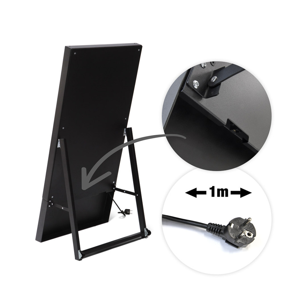 The Smart Line Digital A-Board Black with 43" Samsung Screen is a portable, frameless digital signage display designed for commercial use. It is ideal for events, showrooms, hospitality venues, and point-of-sale locations needing eye-catching, flexible presentation.