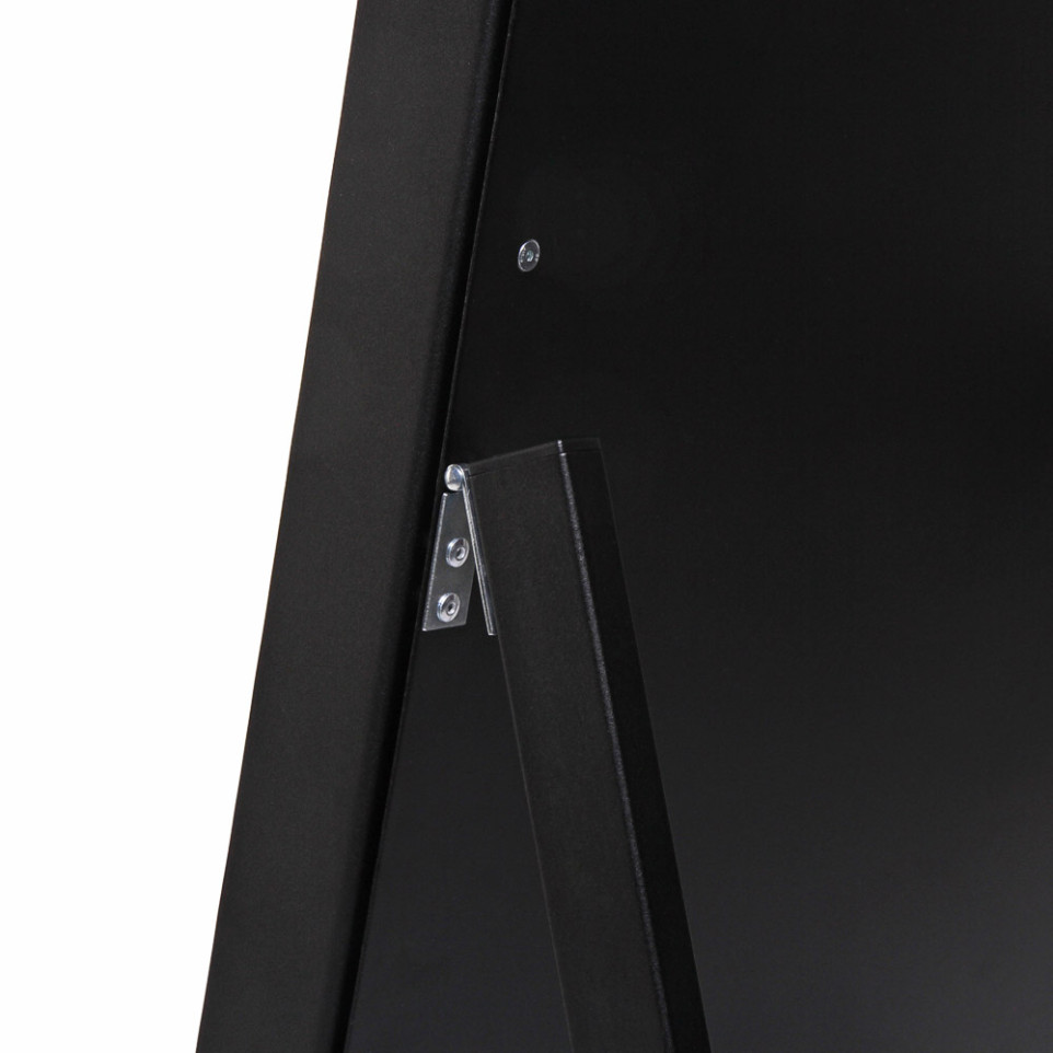 Equipped with wheels and a robust metal frame, the A-board is easy to transport and reposition within indoor spaces.