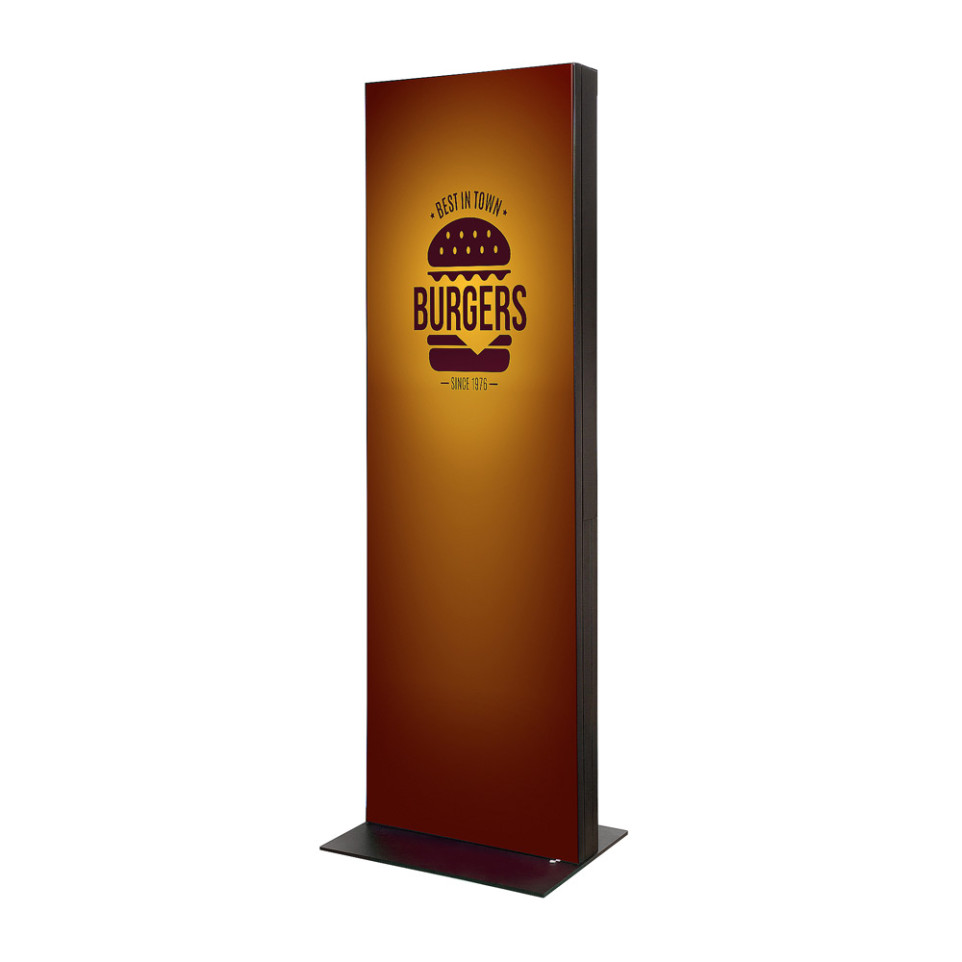 Place the digital fabric totem in high-traffic areas to showcase visual content such as promotional videos, advertisements, or information. Content is easily updated via integrated USB ports, network connectivity, or compatible CMS software. The device operates in landscape or portrait mode, adapting to a variety of locations and content types.