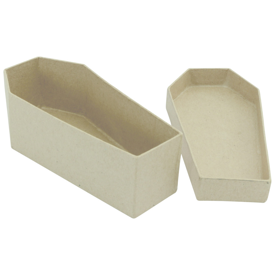 Coffin Box 12.5x6x4cm MULTI-TECHNIQUES: This Coffin Box can be decorated according to your preferences using Décopatch papers, acrylic paint, glitter, stickers, or left as they are for a natural, kraft look. The possibilities are endless! MULTI-USAGES: A coffin box that will bring a smile to your face and fit perfectly into your home decor or on your Halloween table. SIMPLE TECHNIQUE: The Décopatch technique is suitable for both children over 5 years old and adults. Step 1: Tear or cut some pieces of Décopatch paper, approximately 2x2 cm in size. Step 2: Apply PaperPatch glue (not included) to the surface you want to decorate. Step 3: Place a piece of paper on the glued area and add a second layer of glue on top. Step 4: Repeat the process, overlapping the paper pieces until the object is completely or partially covered. CHARACTERISTICS: This box is handcrafted from brown papier-mâché, making each base unique. Dimensions: 12.5x6x4 cm. MADE IN FRANCE: Décopatch is a French brand owned by the Clairefontaine Rhodia Group. Located in the suburbs of Lyon, a team of enthusiasts constantly seeks new ideas to meet the trends in customization, decoration, and creative hobbies.