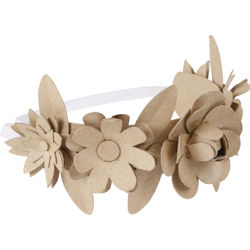 Flower Wreath Headdress MULTI-TECHNIQUES: This Headdress can be decorated according to your preferences using Décopatch papers, acrylic paint, glitter, stickers, or left as they are for a natural, kraft look. The possibilities are endless! DIY DECORATION: A child's headdress to customise according to the theme of the event or your costume. Ideal for Carnival, birthdays, and costume parties. SIMPLE TECHNIQUE: The Décopatch technique is suitable for both children over 5 years old and adults. Step 1: Tear or cut some pieces of Décopatch paper, approximately 2x2 cm in size. Step 2: Apply PaperPatch glue (not included) to the surface you want to decorate. Step 3: Place a piece of paper on the glued area and add a second layer of glue on top. Step 4: Repeat the process, overlapping the paper pieces until the object is completely or partially covered. CHARACTERISTICS: This headdress is handcrafted from brown papier-mâché, making each base unique. Dimensions: 16x9x3 cm. MADE IN FRANCE: Décopatch is a French brand owned by the Clairefontaine Rhodia Group. Located in the suburbs of Lyon, a team of enthusiasts constantly seeks new ideas to meet the trends in customization, decoration, and creative hobbies.